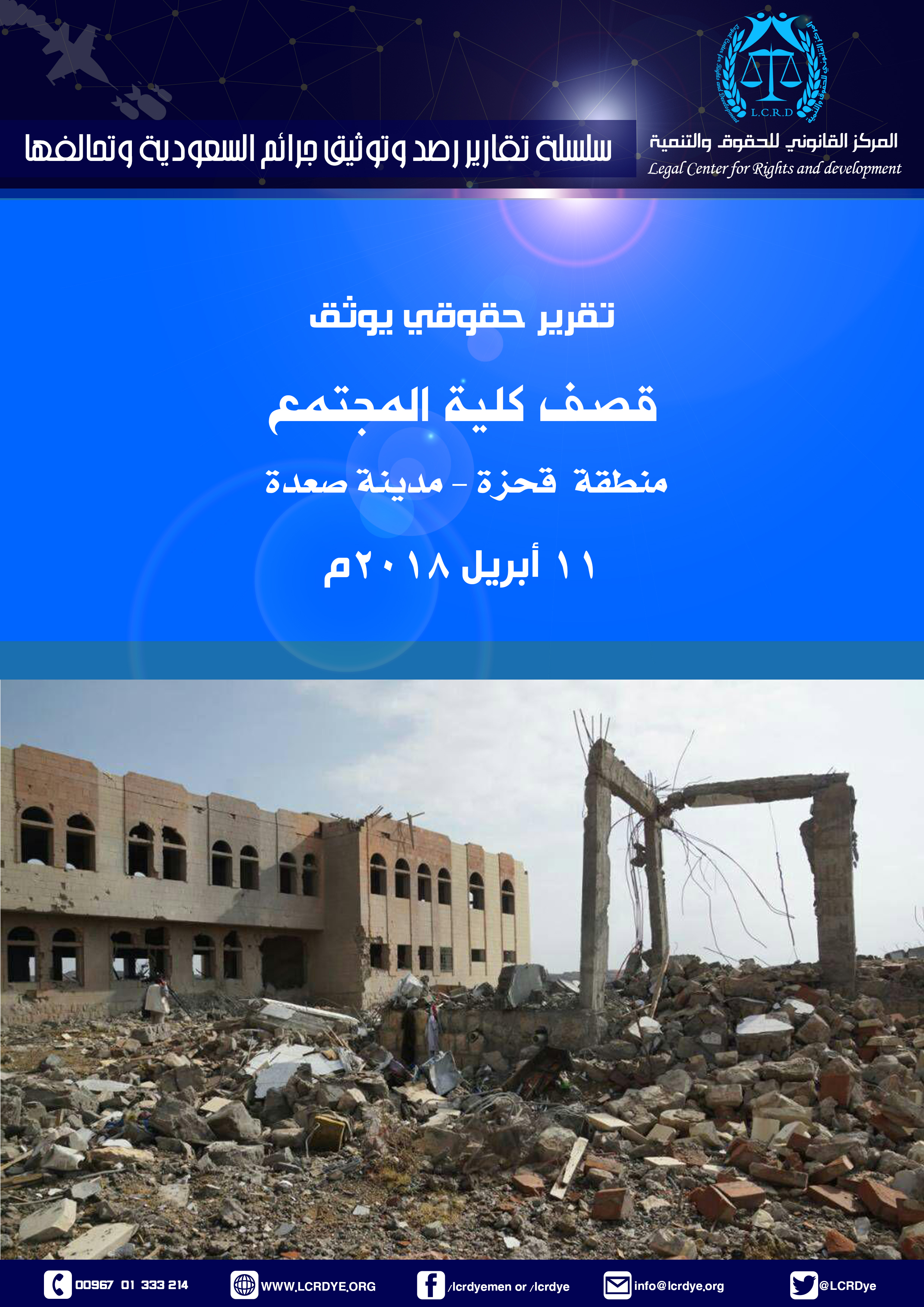 قصف كلية المجتمع بمنطقة قحزة – مدينة صعدة – بتاريخ 11 أبريل 2018