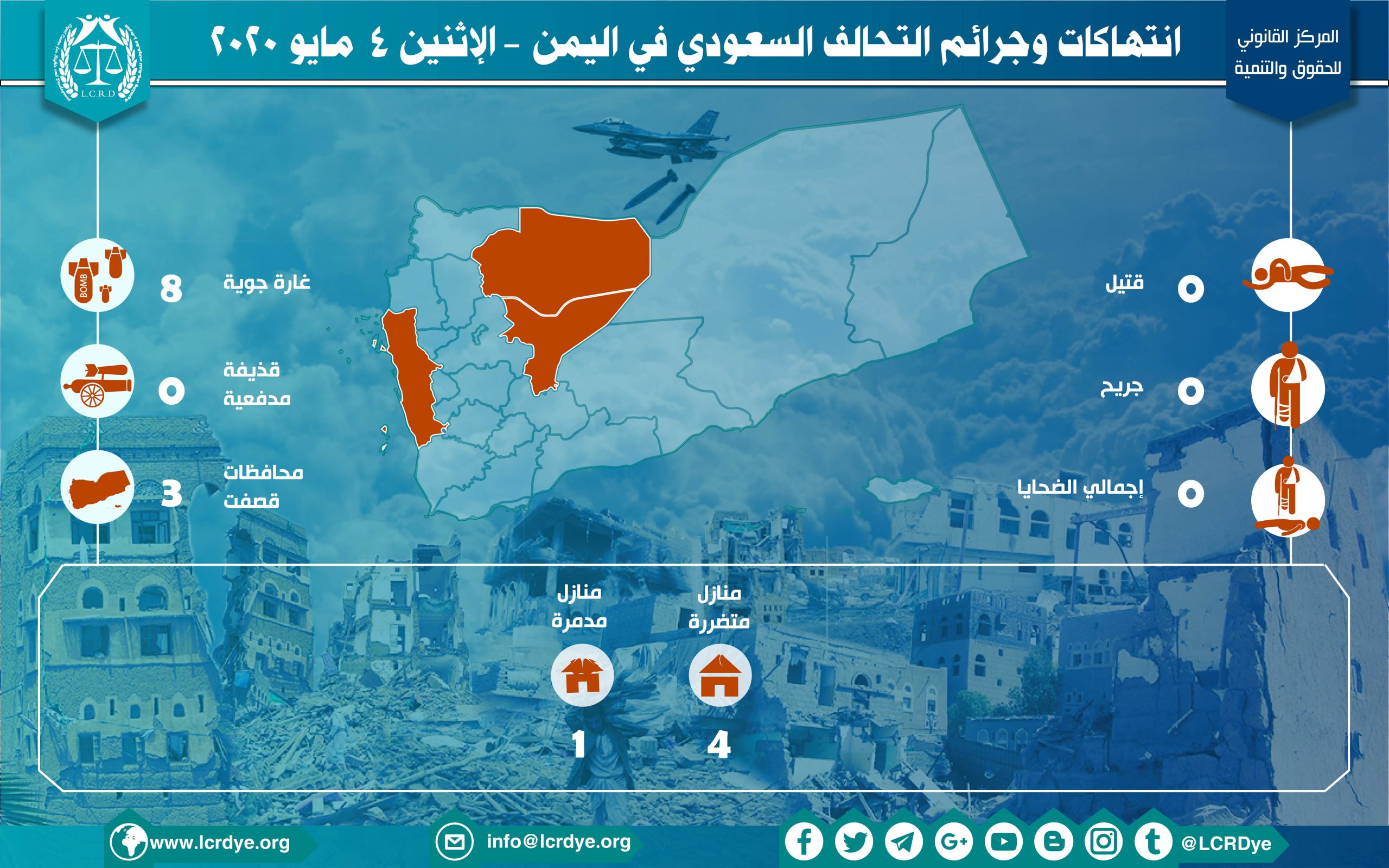 إحصائية أولية لإنتهاكات التحالف السعودي في اليمن – الإثنين 4 مايو 2020