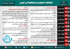 الرصد الحقوقي اليومي لاانتهاكات السعودية وتحالفها ضد المدنيين في اليمن ليوم الجمعه الموافق 22سبتمبر 2017م