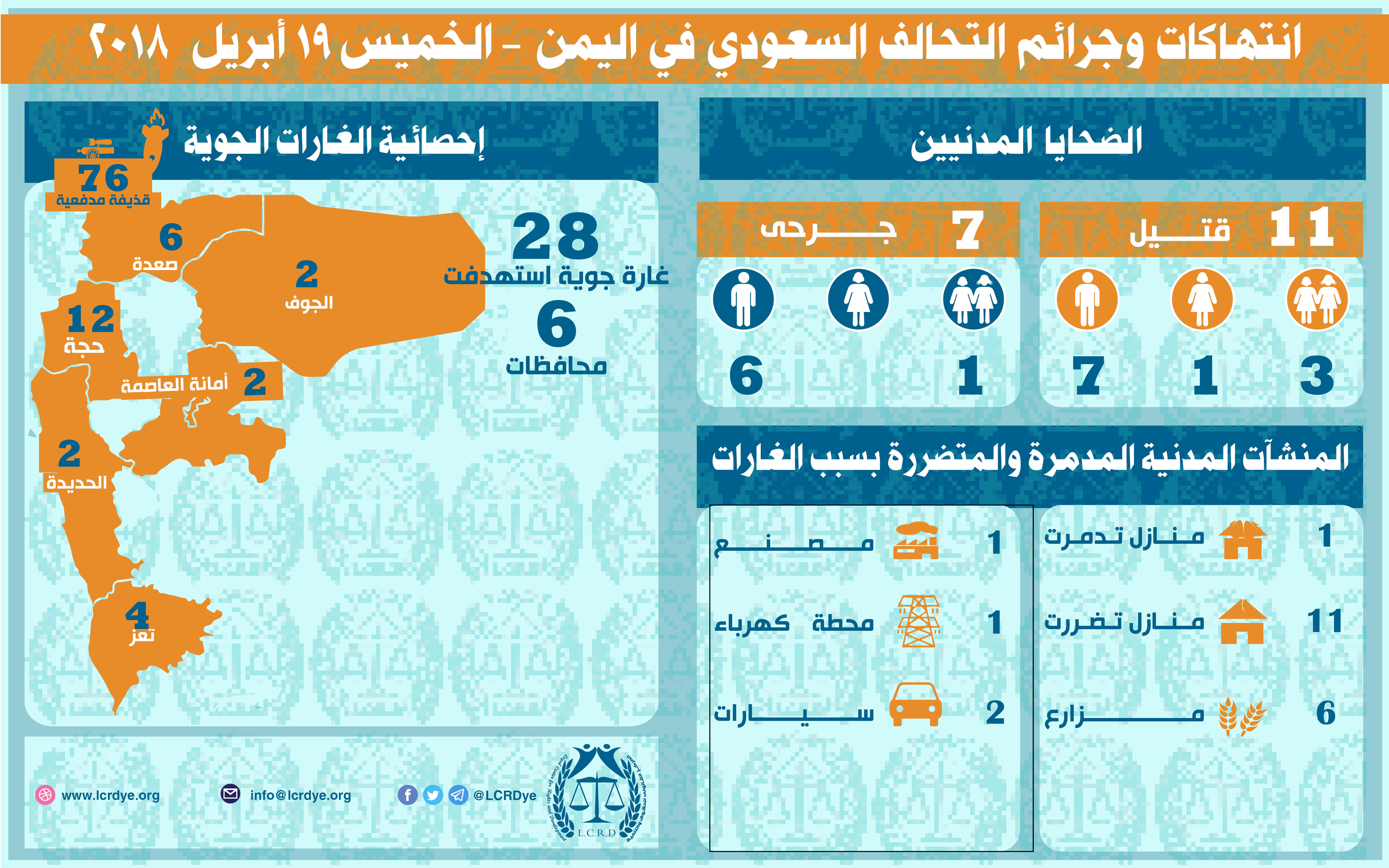 إحصائية أولية لإنتهاكات التحالف السعودي في اليمن 19 إبريل 2018 Last updated أبريل 23, 2018 للتحميل https://www.lcrdye.org/wp-content/uploads/2018/04/19-4-2018.pdf التحالف السعوديالضحايا المدنيين في اليمنالمركز القانوني للحقوق والتنميةاليمن Share FacebookTwitterGoogle+ReddItWhatsAppPinterestالبريد الإلكتروني