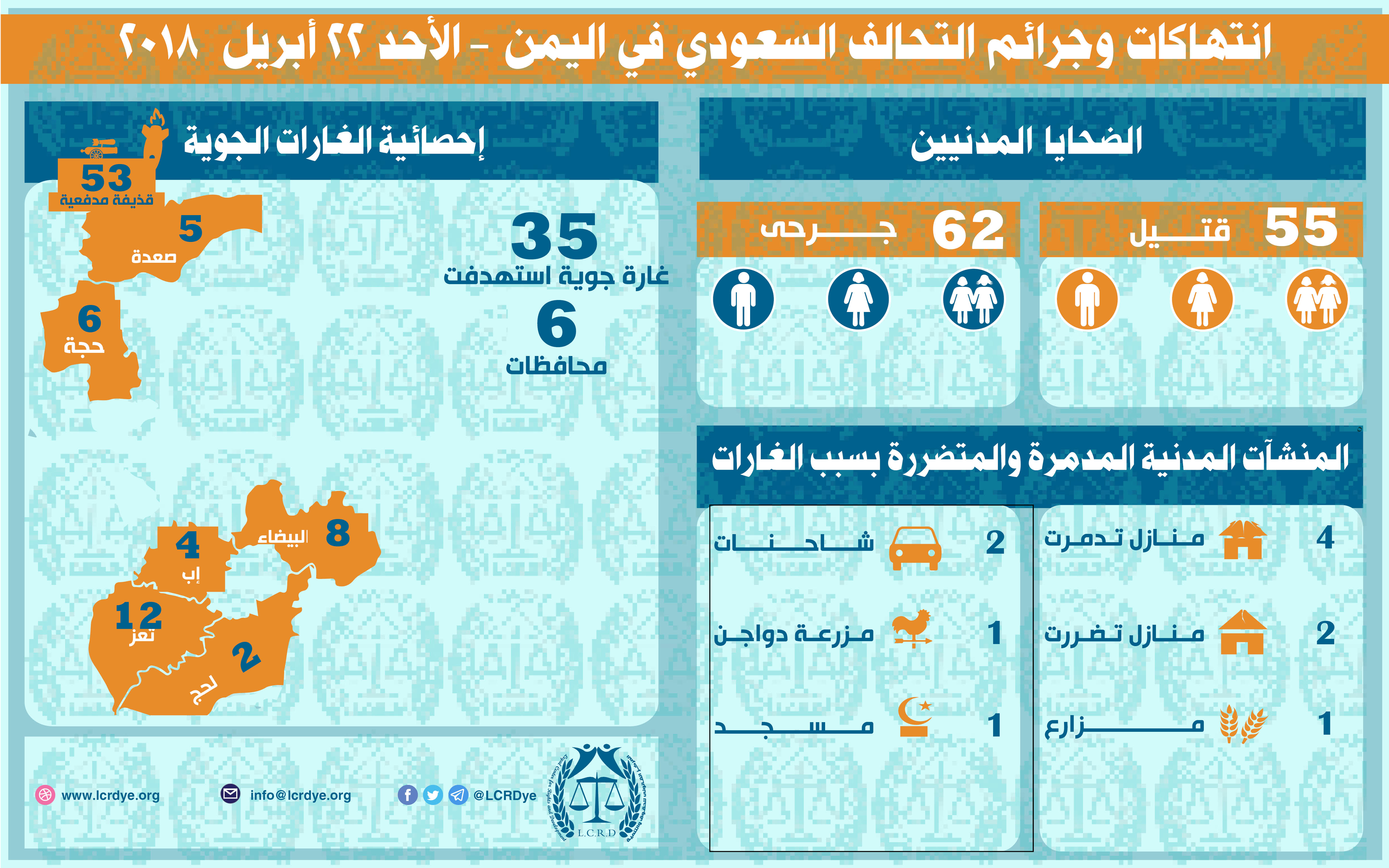 • إحصائية أولية لإنتهاكات التحالف السعودي في اليمن 22 إبريل 2018