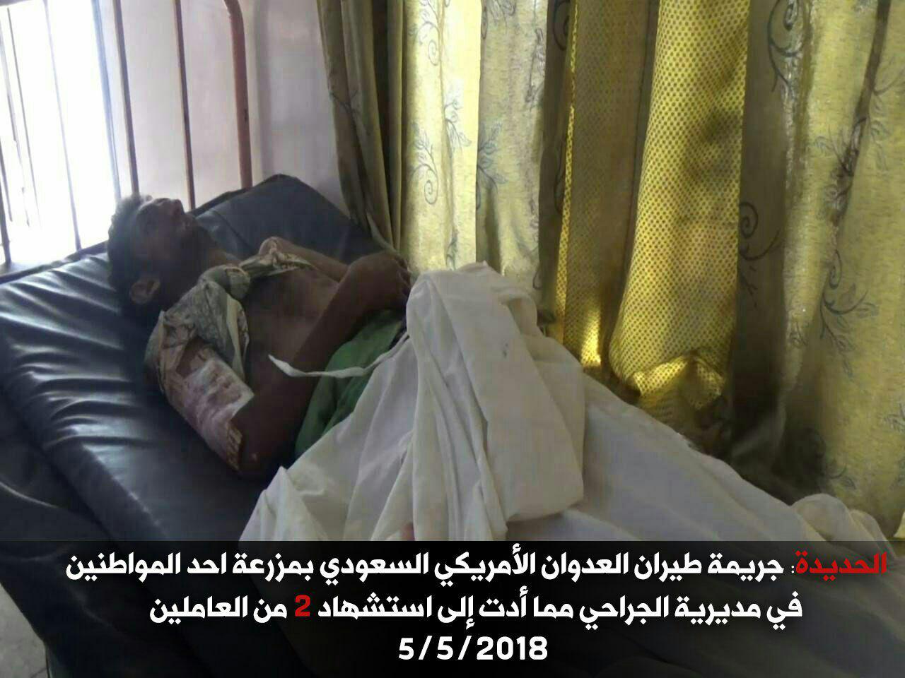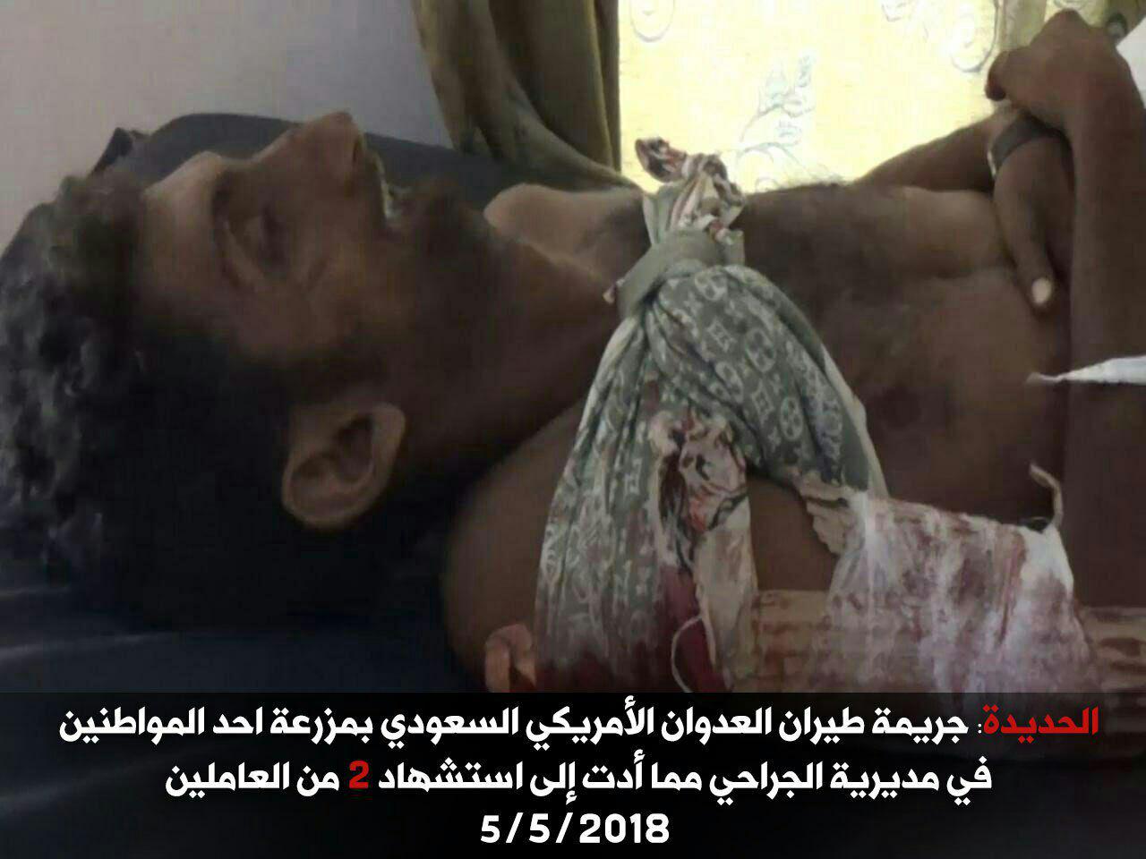 واقعة قصف عمال في إحدى المزارع بمديرية الجراحي جنوب الحديدة 5-5-2018 Last updated مايو 6, 2018 استهداف المدنييناستهداف المدنيين والمنشآت اليمنيةالتحالف السعوديالضحايا المدنيين في اليمنالمركز القانوني للحقوق والتنميةاليمنانتهاك التحالف السعودي لقوانين الحربانتهاك قوانين الحرب Share FacebookTwitterGoogle+ReddItWhatsAppPinterestالبريد الإلكتروني