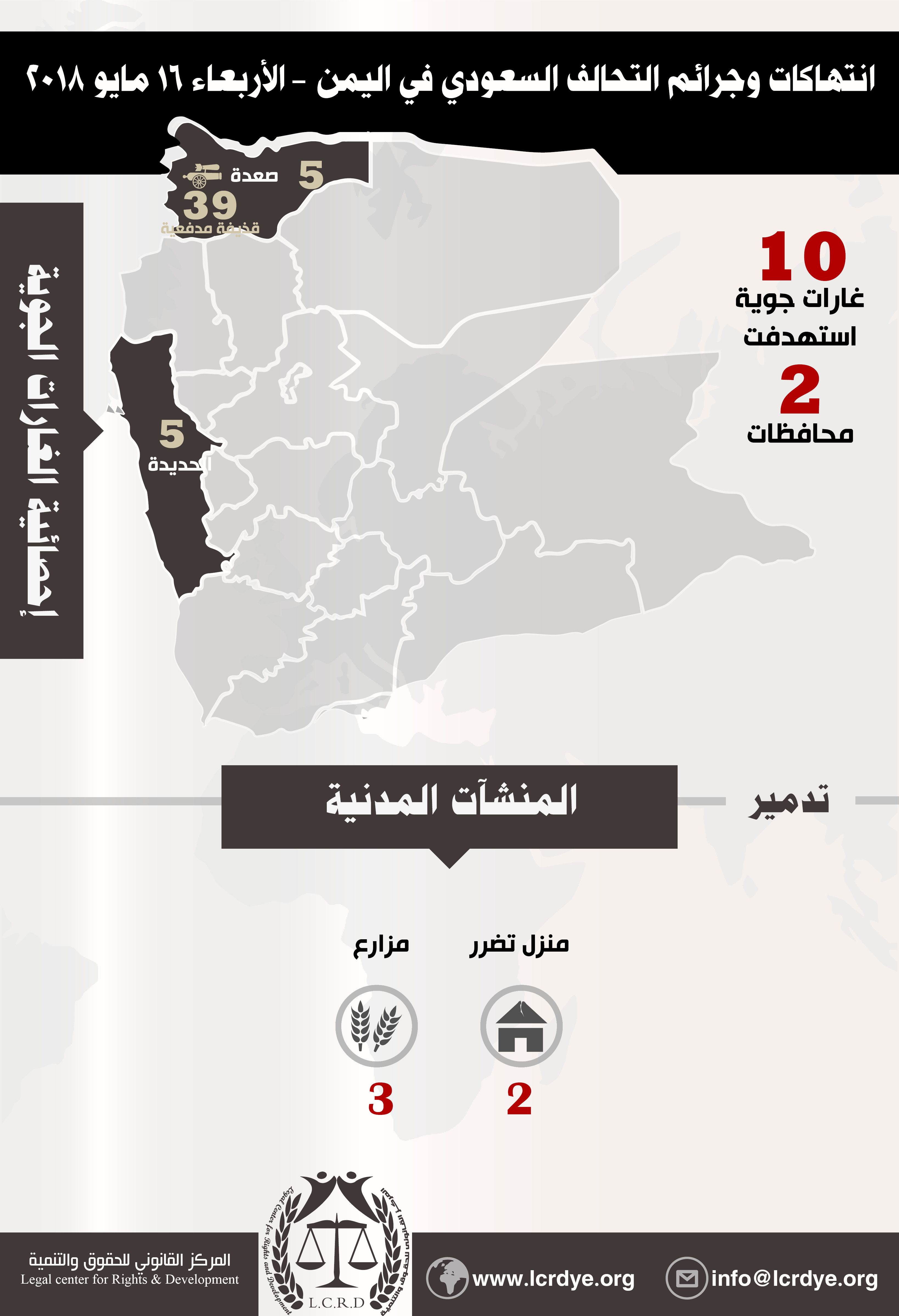 إحصائية أولية لإنتهاكات التحالف السعودي في اليمن 16 مايو 2018