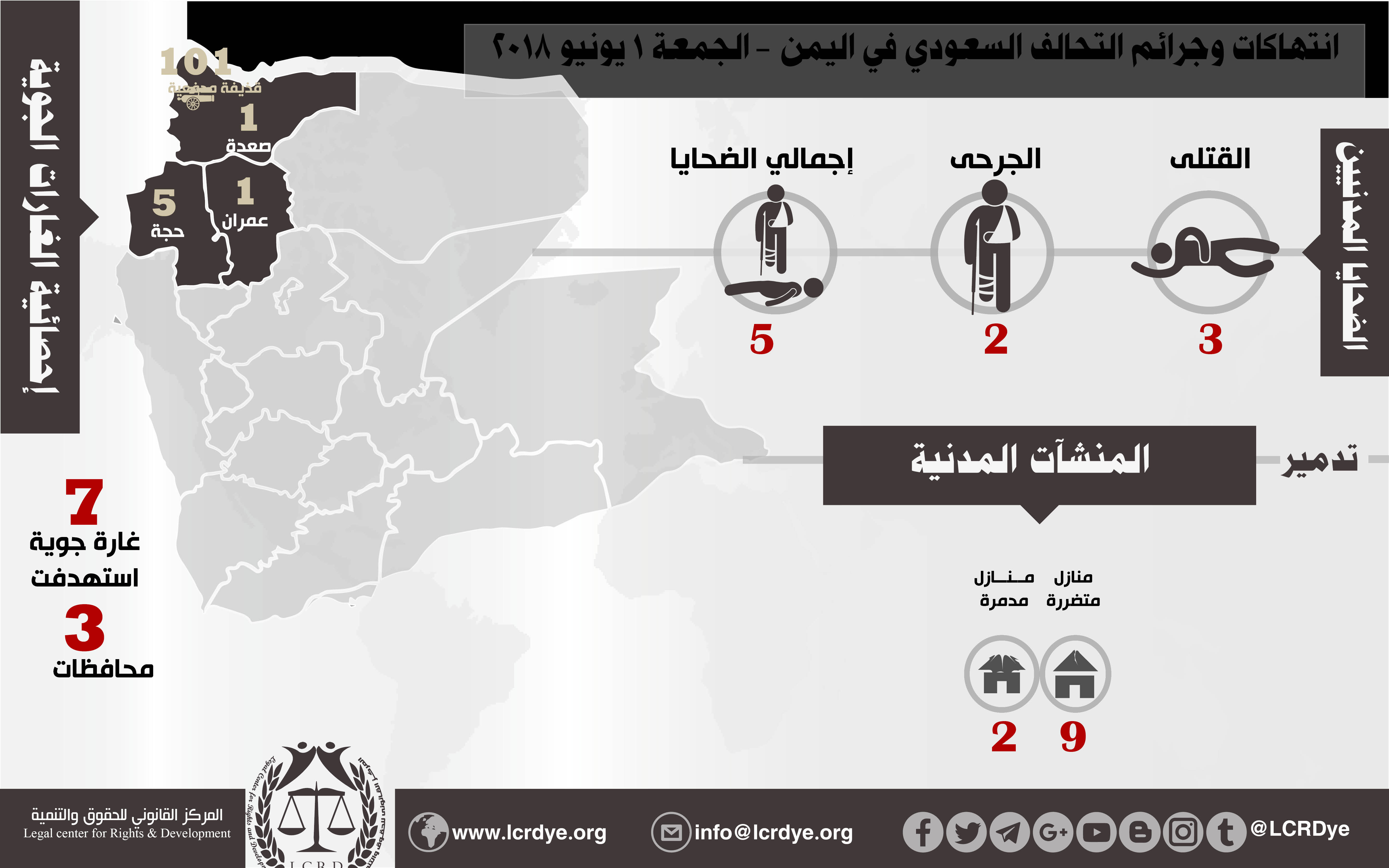 إحصائية أولية لإنتهاكات التحالف السعودي في اليمن 1 يونيو 2018
