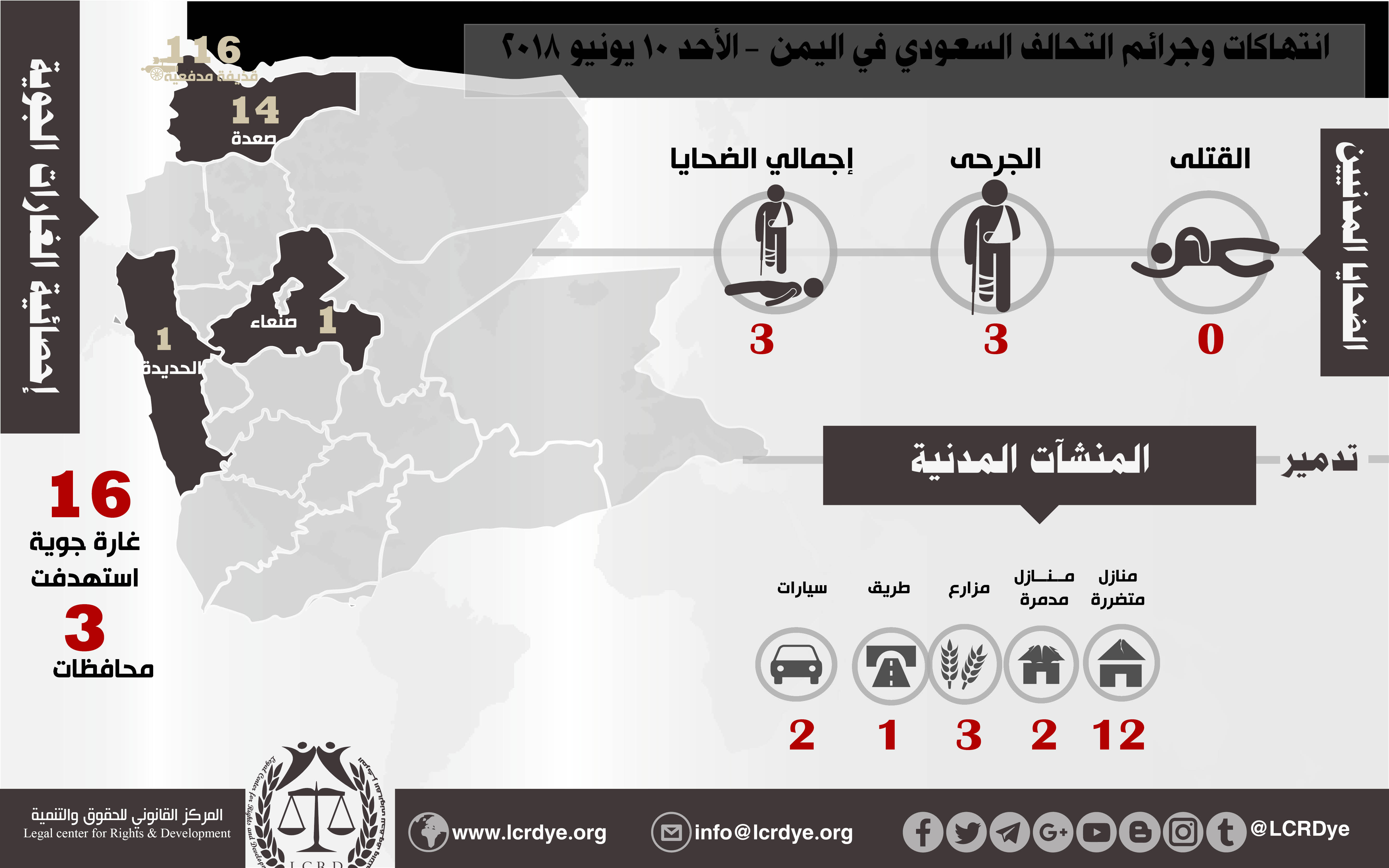 إحصائية أولية لإنتهاكات التحالف السعودي في اليمن 10 يونيو 2018 Last updated يونيو 11, 2018 للتحميل https://www.lcrdye.org/wp-content/uploads/2018/06/10-6-2018.pdf التحالف السعوديالمركز القانوني للحقوق والتنميةاليمن Share FacebookTwitterGoogle+ReddItWhatsAppPinterestالبريد الإلكتروني