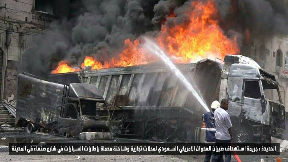 العودة إلى "واقعة استهداف و قصف الطيران لحفار بكلين يقوم بحفر الإنفاق ومحلات تجارية بشارع صنعاء وشاحنة محملة…"