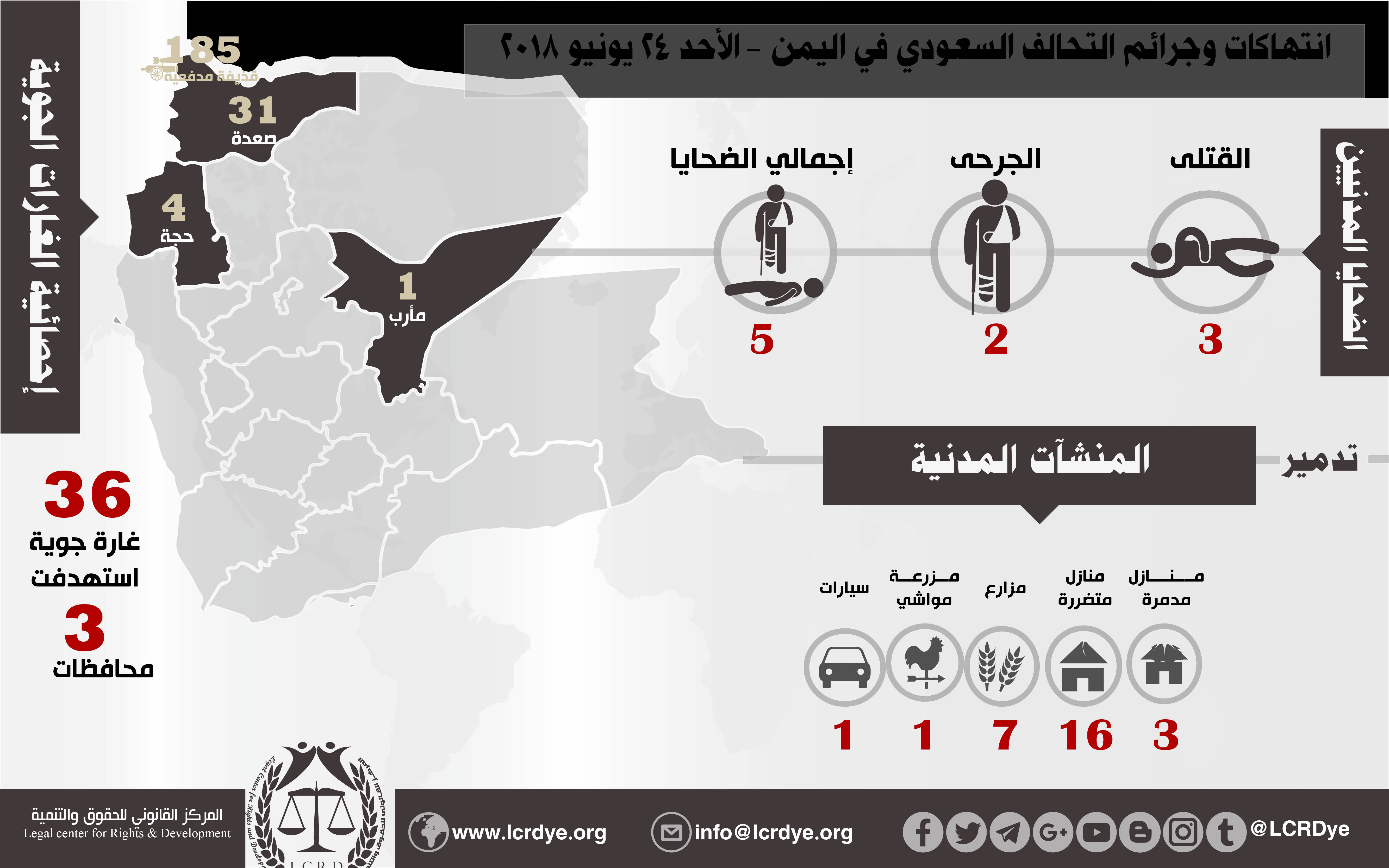 إحصائية أولية لإنتهاكات التحالف السعودي في اليمن 24 يونيو 2018 Last updated يونيو 27, 2018 للتحميل https://www.lcrdye.org/wp-content/uploads/2018/06/24-6-2018.pdf التحالف السعوديالمركز القانوني للحقوق والتنميةاليمن Share FacebookTwitterGoogle+ReddItWhatsAppPinterestالبريد الإلكتروني