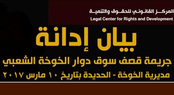 المركز القانوني للحقوق والتنمية يدين بأشد عبارات الإدانة والاستنكار إستمرار التحالف السعودي في استهداف الأسواق والمنشآت المدنية, واستمرار قتل المدنيين في ظل صمت الأمم المتحدة وتجاهلها لهذه الإنتهاكات التي تمثل جرائم حرب وجرائم ضد الإنسانية والتي يجب احالتها الى المحاكم الدولية حتى لا يفلت مرتكبي تلك الجرائم من العقاب، وعدم التغاضي عن محاسبة مرتكبي تلك الجرائم الذين جعلوا من صمت الأمم المتحدة ذريعة في استمرار ارتكاب المزيد من الجرائم ضد المدنيين والمنشآت المدنية.