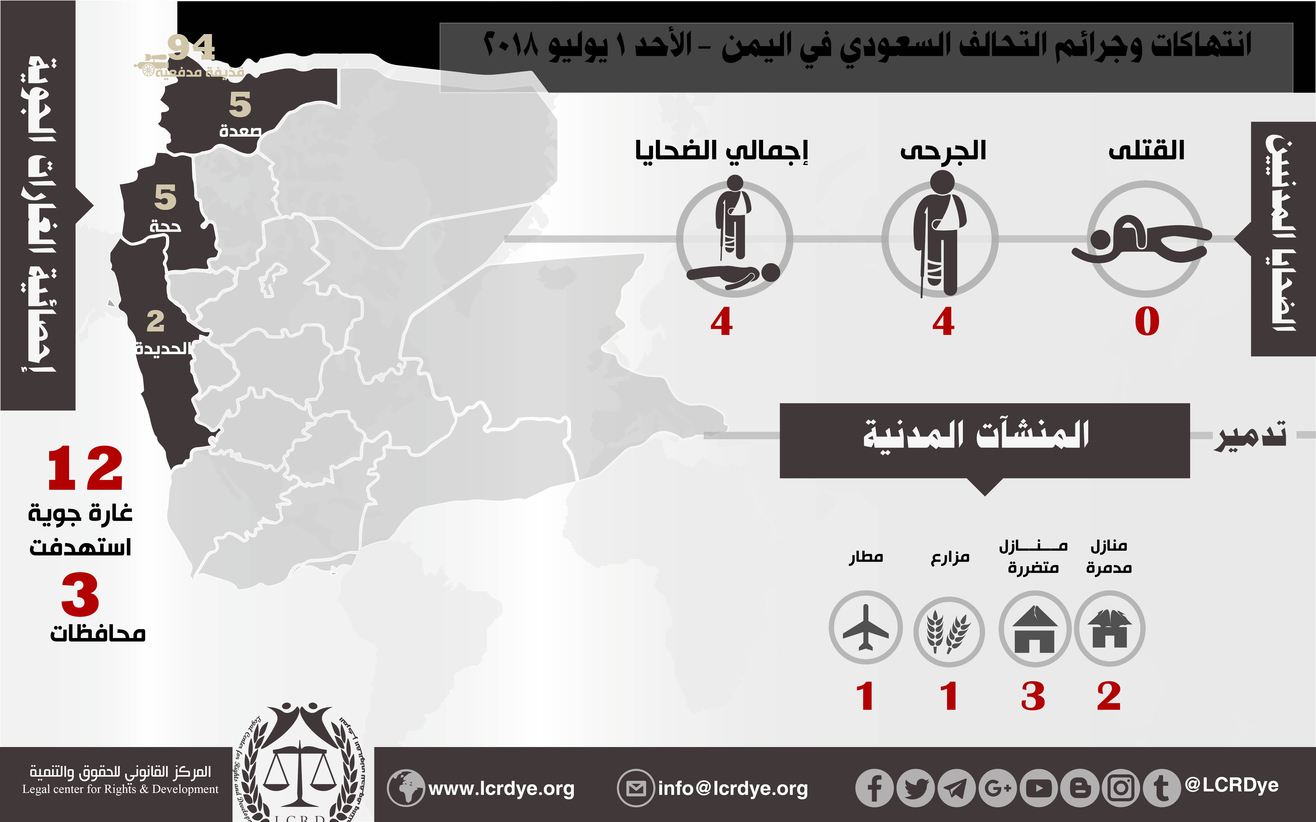 إحصائية أولية لإنتهاكات التحالف السعودي في اليمن 1 يوليو 2018 Last updated يوليو 2, 2018 للتحميل https://www.lcrdye.org/wp-content/uploads/2018/07/1-7-2018.pdf التحالف السعوديالمركز القانوني للحقوق والتنميةاليمن Share FacebookTwitterGoogle+ReddItWhatsAppPinterestالبريد الإلكتروني