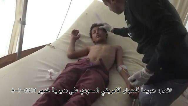 واقعة استهداف طيران عدوان التحالف السعودي علي مزرعة احد المواطنين في منطقة شعب الدخل بمديرية خدير بمحافظة تعز 8-7-2018م