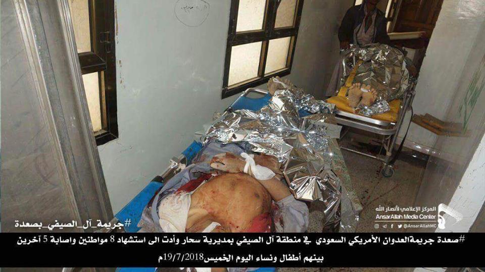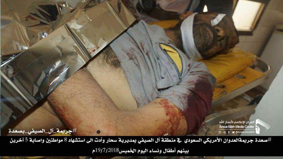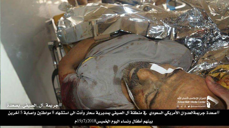 واقعة قصف طيران عدوان التحالف السعودي لمنزل المواطن مسفر عيضه جابر الصيفي في منطقة آل الصيفي بمديرية سحار بمحافظة صعدة 19-7-2018م Last updated يوليو 23, 2018 استهداف الاحياء المدنيةاستهداف البنى التحتيةاستهداف المدنييناستهداف المدنيين والمنشآت اليمنيةالتحالف السعوديالضحايا المدنيين في اليمنالمركز القانوني للحقوق والتنميةاليمن Share FacebookTwitterGoogle+ReddItWhatsAppPinterestالبريد الإلكتروني