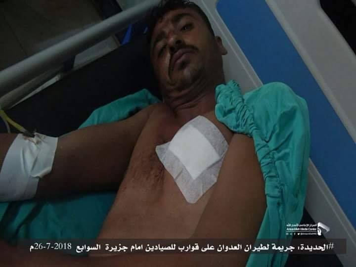 • جريمة قصف طيران عدوان التحالف السعودي الأمريكي بحق الصيادين اليمنيين امام جزيرة السوابع في ساحل الحديدةر26-7-2018