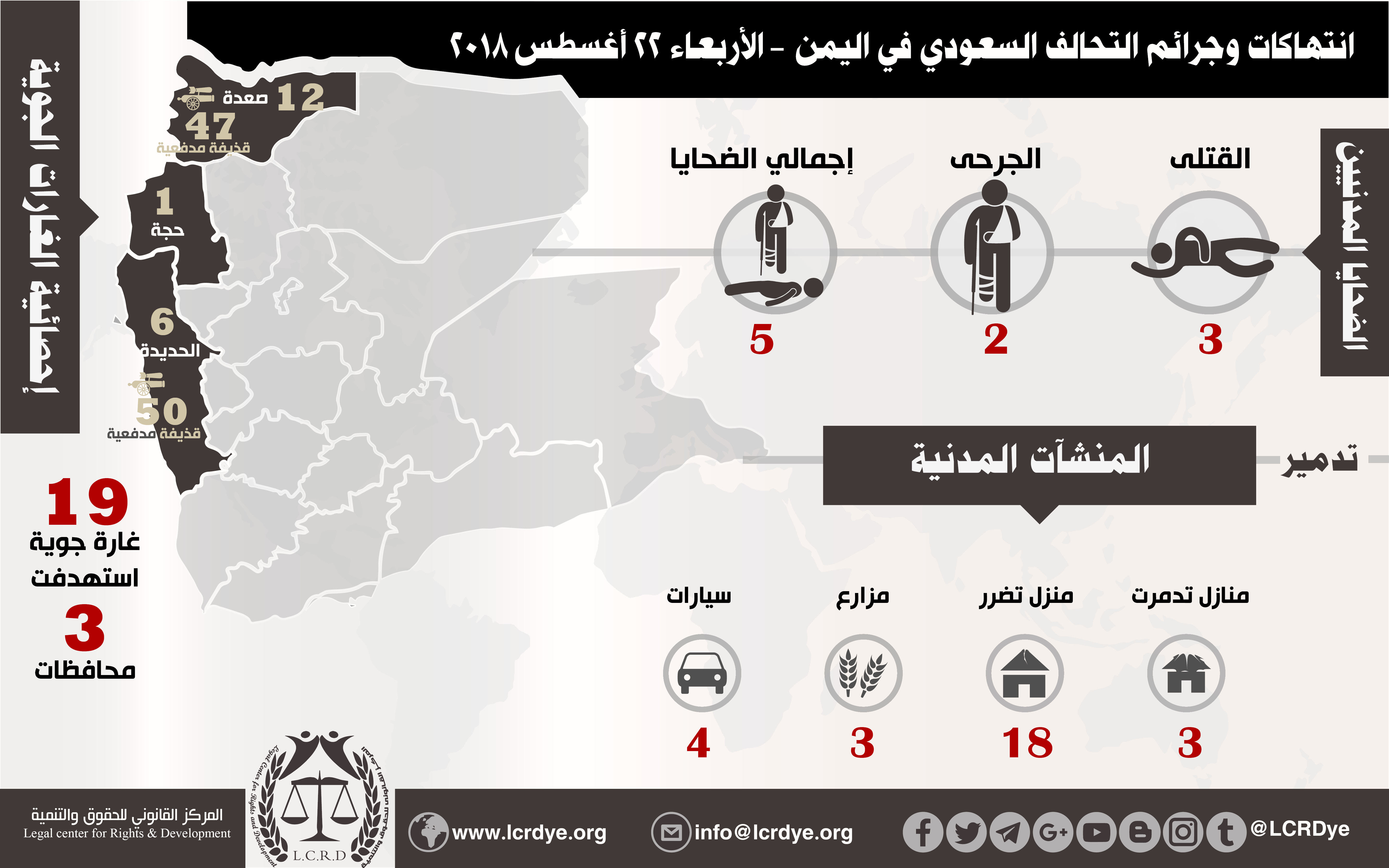 • إحصائية أولية لإنتهاكات التحالف السعودي في اليمن 22 أغسطس 2018