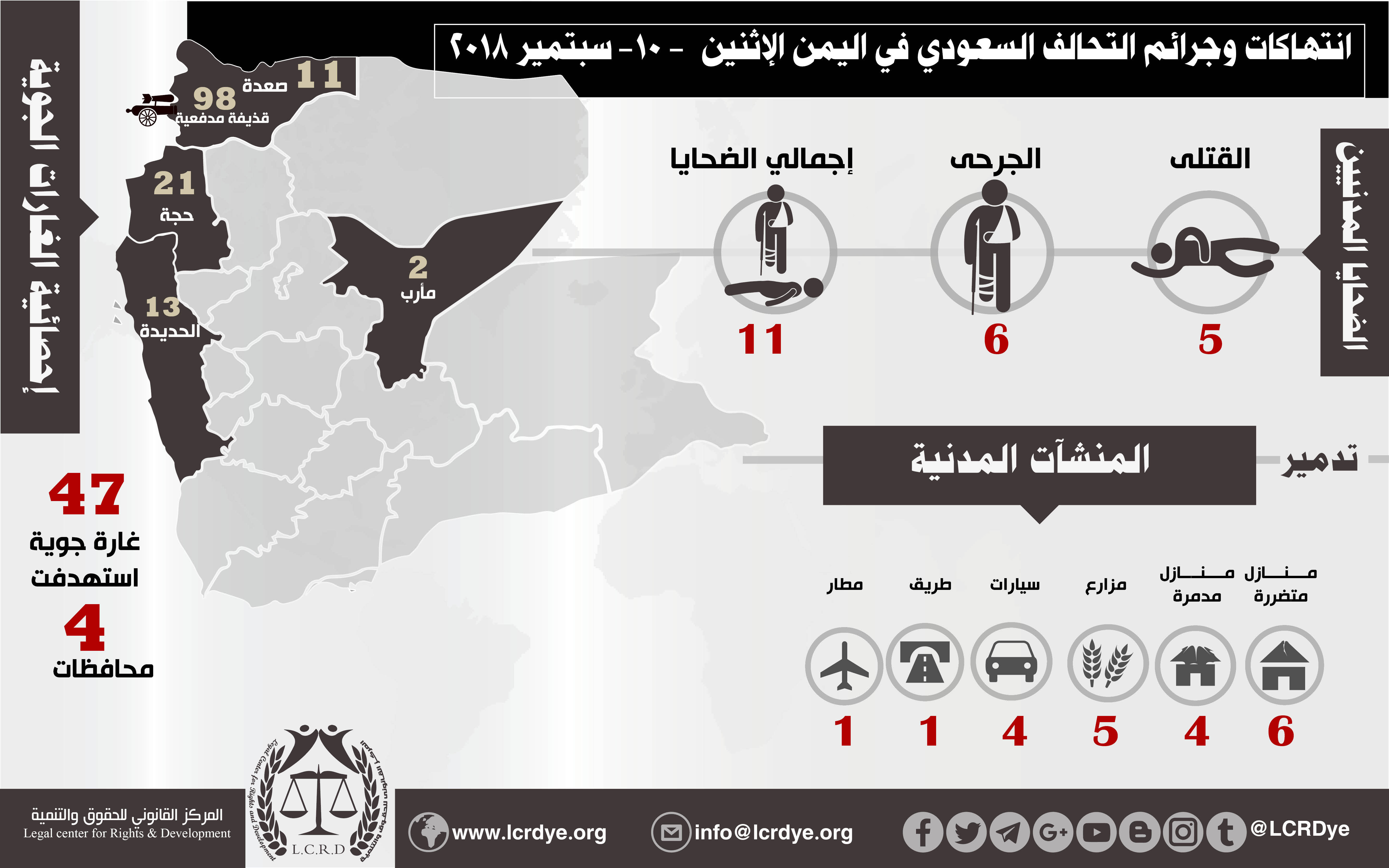 استهداف البنى التحتيةاستهداف المدنييناستهداف المدنيين والمنشآت اليمنيةاستهداف المنشآت المدنيةالتحالف السعوديالمركز القانوني للحقوق والتنميةاليمنرصد وتوثيق انتهاكات التحالف السعودي