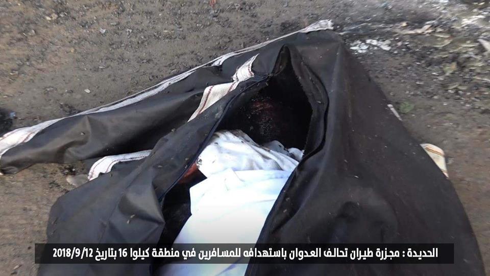 جريمة قصف طيران تحالف العدوان السعودي على سيارات مسافرين و قواطر ومحلات تجارية في خط كيلو 16 الرابط بين الحديدة و صنعاء 12-9-2018 Last updated سبتمبر 17, 2018 استهداف الاحياء المدنيةاستهداف النازحينالضحايا المدنيين في اليمنالمركز القانوني للحقوق والتنميةاليمنانتهاك القانون الدوليجرائم ضد الانسانيةعاصفة الحزم Share FacebookTwitterGoogle+ReddItWhatsAppPinterestالبريد الإلكتروني