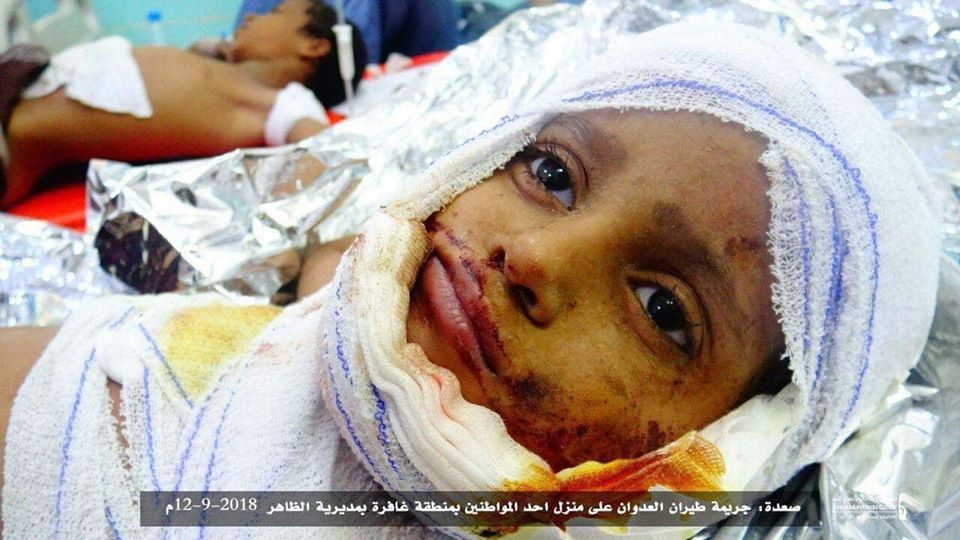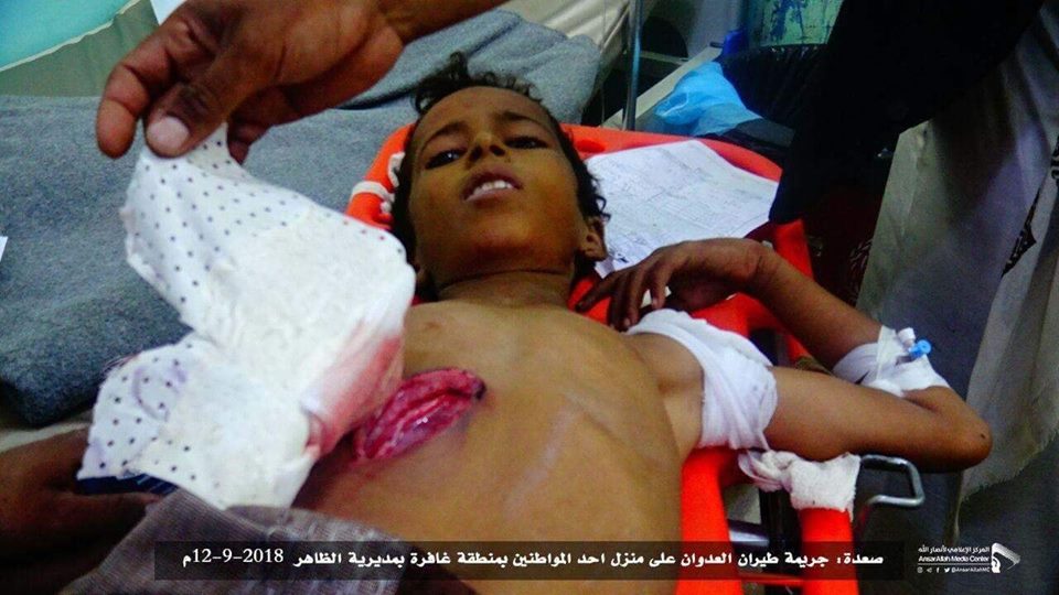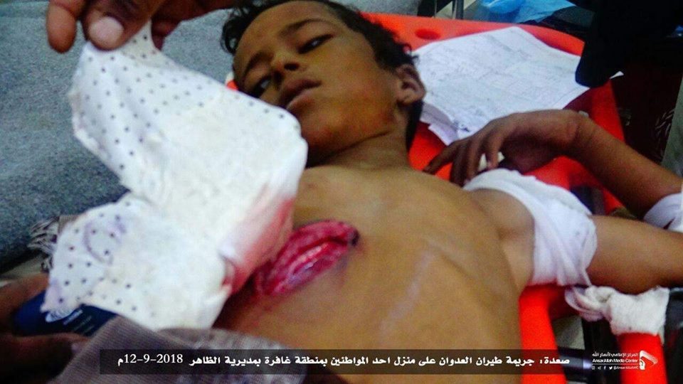 • جريمة قصف طيران تحالف العدوان السعودي على منزل احد المواطنين بمنطقة غافرة بمديرية الظاهر في محافظة صعدة 12-9-2018