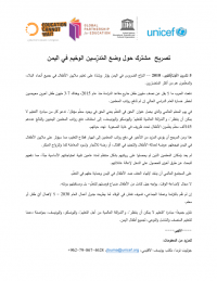 تصريح مشترك حول وضع المدرسين الوخيم في اليمن On أكتوبر 6, 2018 https://reliefweb.int/report/yemen/joint-declaration-ecw-gpe-unesco-unicef-dire-situation-teachers-yemen-enar تصريح مشترك حول وضع المدرسين الوخيم في اليمن Share FacebookTwitterGoogle+ReddItWhatsAppPinterestالبريد الإلكتروني