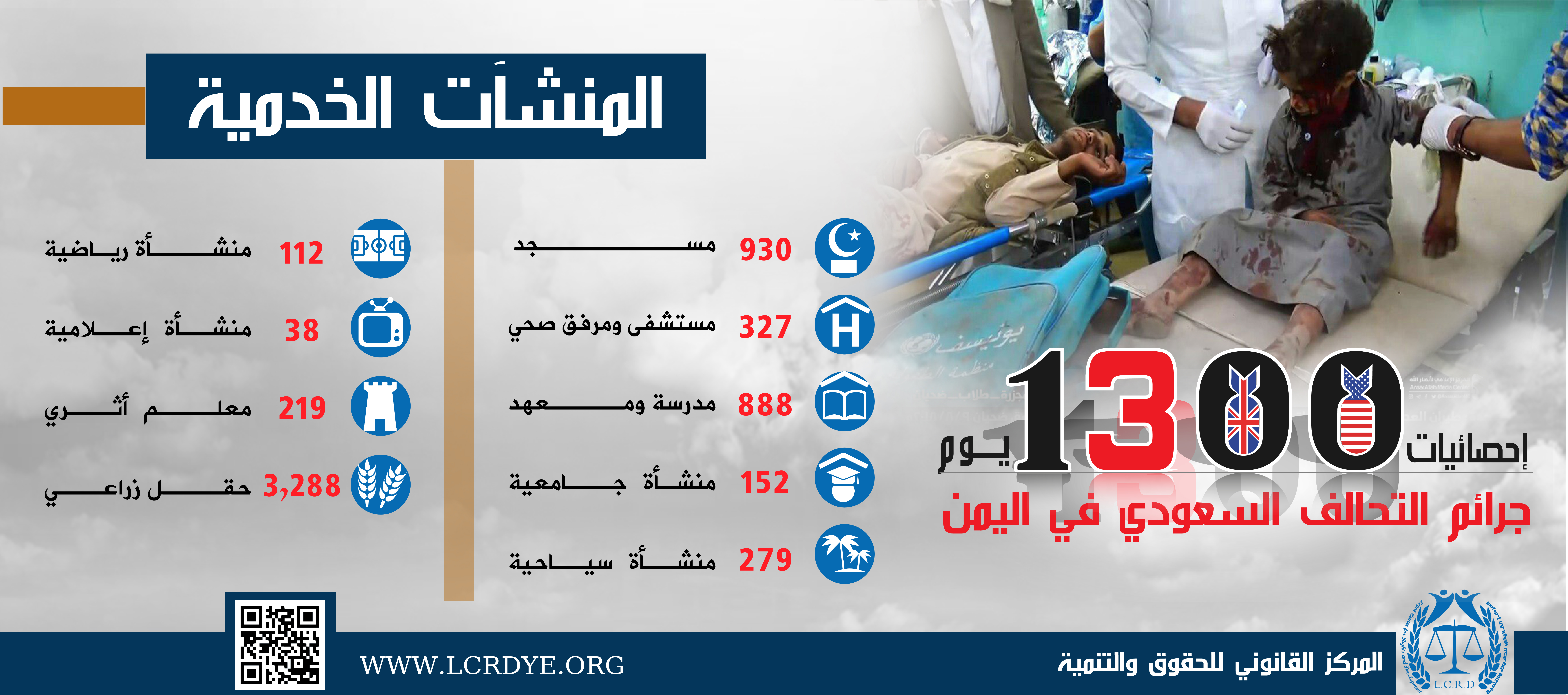 احصائية المنشآت الخدمية المدمرة والمتضررة في اليمن نتيجة الغارات التي تشنها قوات التحالف السعودي خلال 1300 يوم منذ بداية العدوان على اليمن On أكتوبر 19, 2018 Share FacebookTwitterGoogle+ReddItWhatsAppPinterestالبريد الإلكتروني