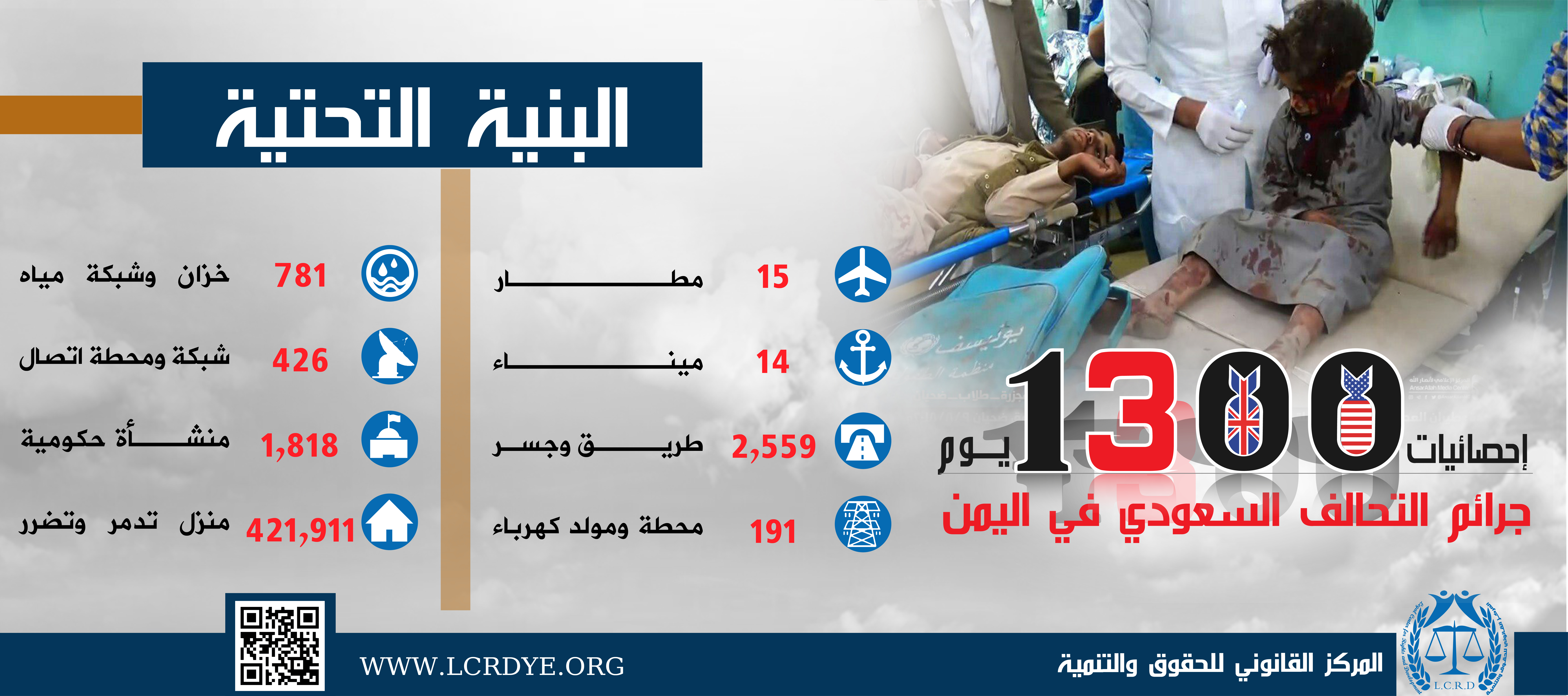 احصائية البنية التحتية المدمرة والمتضررة في اليمن نتيجة الغارات التي تشنها قوات التحالف السعودي خلال 1300 يوم منذ بداية العدوان على اليمن On أكتوبر 19, 2018 Share FacebookTwitterGoogle+ReddItWhatsAppPinterestالبريد الإلكتروني