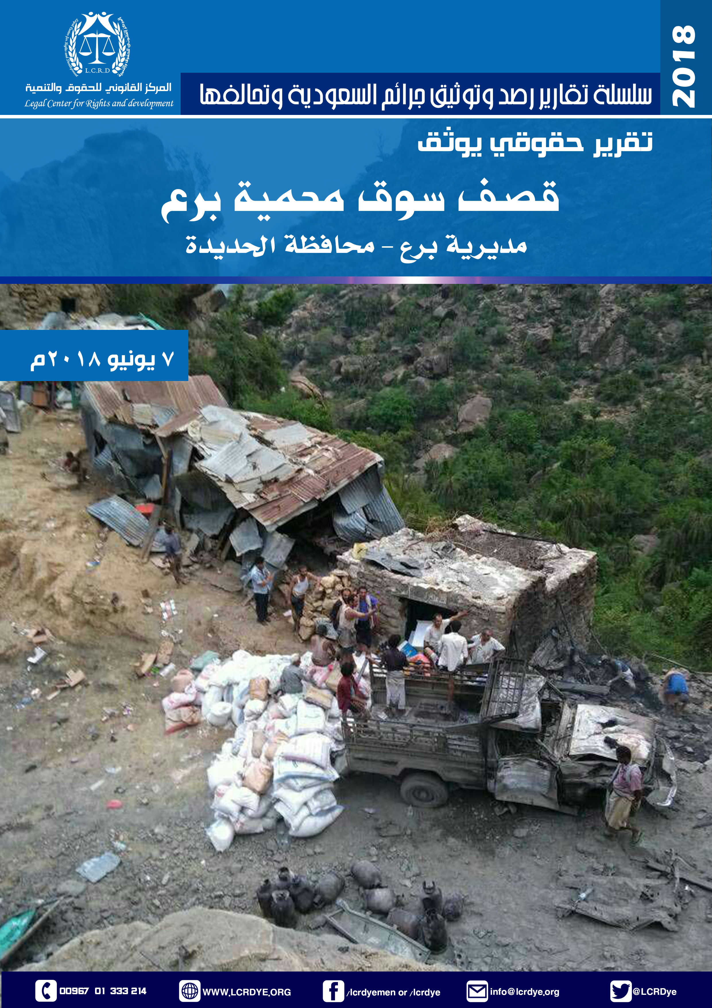 دأب التحالف السعودي خلال عدوانه العسكري وحصاره الخانق على الشعب اليمني على مدار أكثر من ثلاثة أعوام فائتة على استهداف وقصف المخازن والأسواق الشعبية في مختلف المناطق المأهولة بالسكان المدنيين في اليمن بطريقة متعمدة وبنية التجويع والعقاب الجماعي على المدنيين وكوسيلة من أساليب حربه على اليمن واستمراراً لذلك قامت طائرات التحالف السعودي الحربية عند الساعة الثانية قبل فجر يوم الخميس الموافق 7 يونيو 2018م بشن أربع غارات جوية استهدف بها سوق محمية برع الشعبي الكائن في أعلى المحمية والتي تتبع مديرية برع الجبلية بمحافظة الحديدة أسفرت الغارات عن دمار هائل وحرائق كبيرة بمحلات ومخازن الأغذية والسيارات التابعة للمدنيين بالسوق كانت الحصيلة التي وثقها المركز القانوني تدمير مخزن غذاء و(4) محلات تجارية منها محل بيع اسطوانات الغاز المنزلي وتدمير (12) سيارة مدنية وتضرر سيارة أخرى مملوكة لأهالي المنطقة التي تحيط منازلهم ومناطقهم السكنية بالمحمية.