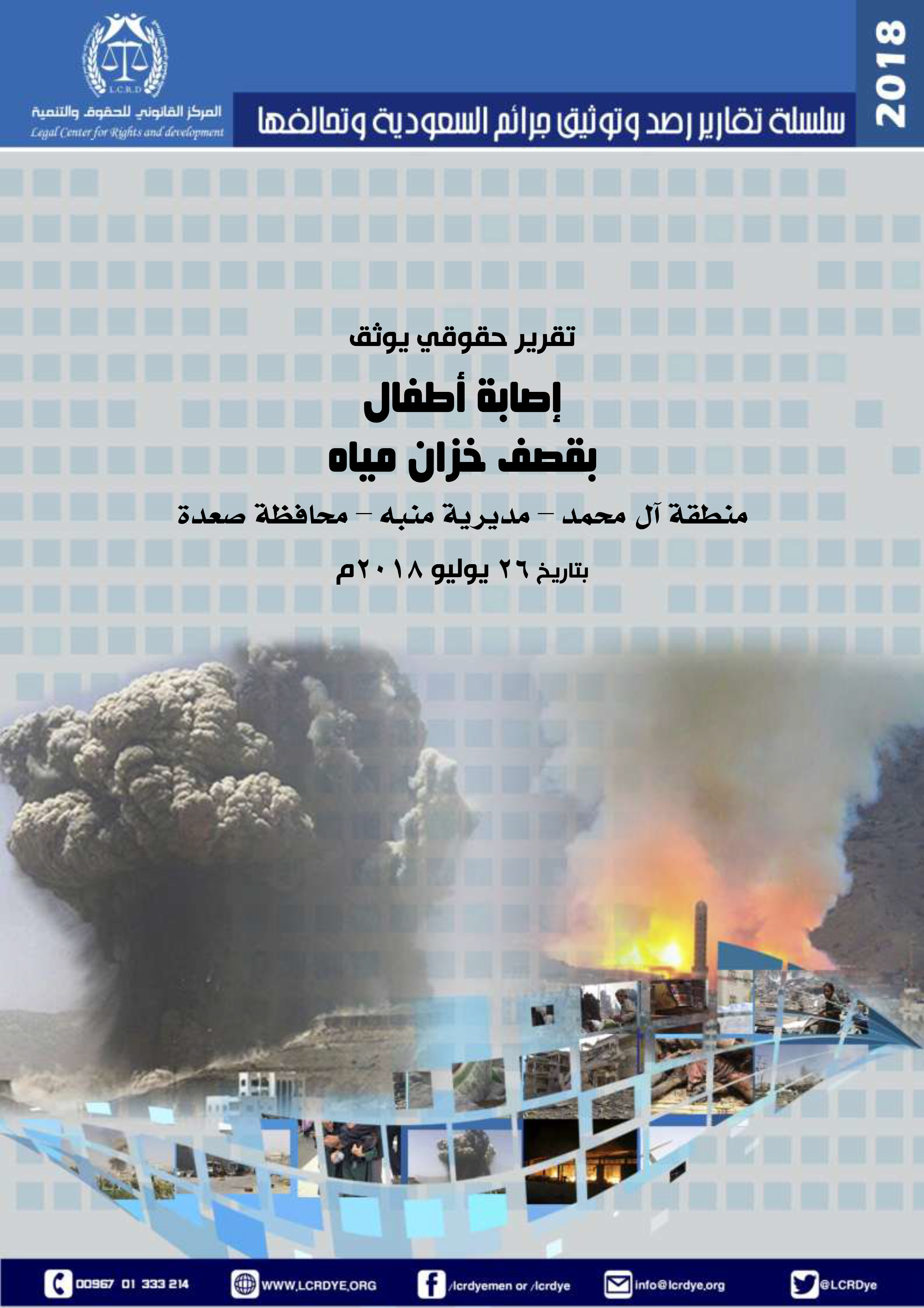 إصابة أطفال بقصف خزان مياه منطقة آل محمد – مديرية منبه – محافظة صعدة بتاريخ 26 يوليو 2018م