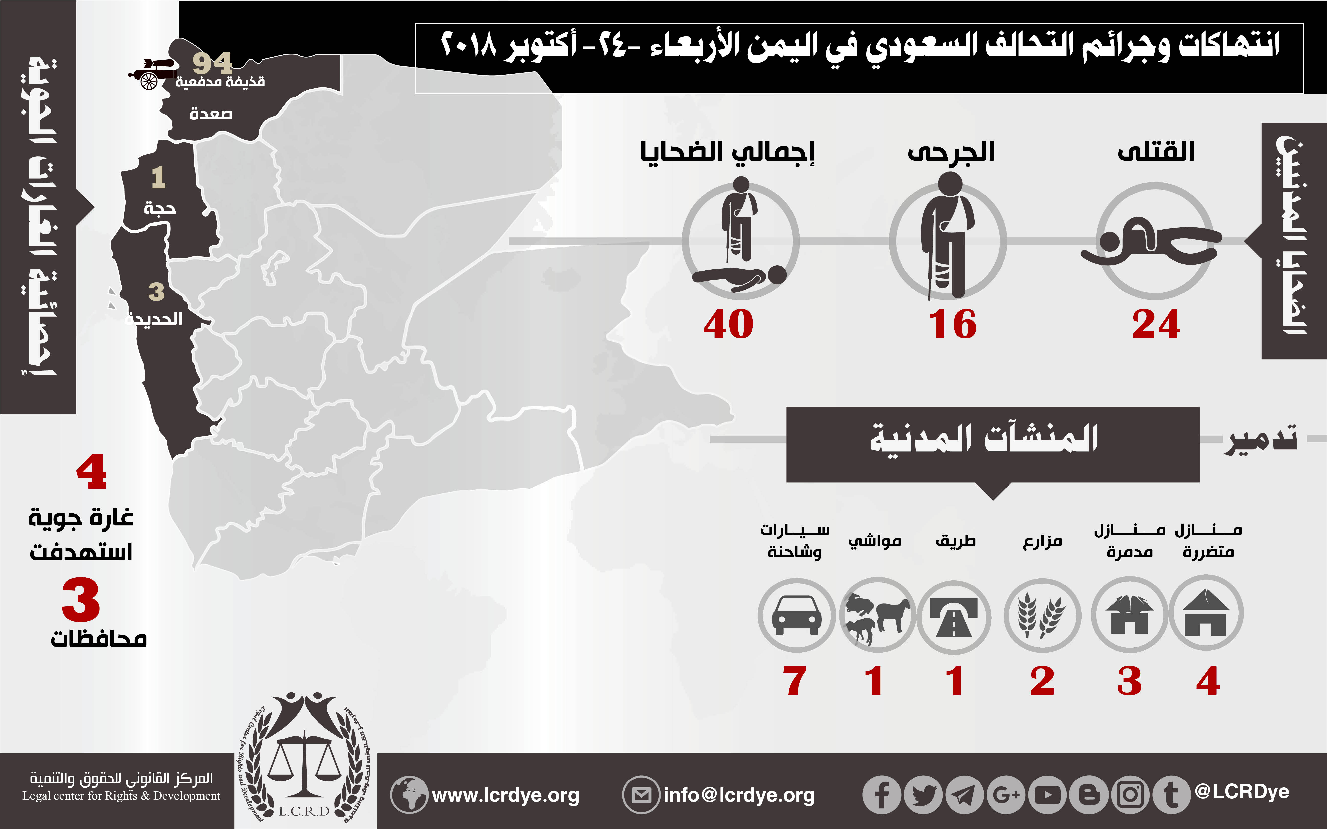 إحصائية أولية لإنتهاكات التحالف السعودي في اليمن 24 أكتوبر 2018 Last updated أكتوبر 27, 2018 للتحميل https://www.lcrdye.org/wp-content/uploads/2018/10/24-10-2018.pdf استهداف المدنيينالتحالف السعوديالمركز القانوني للحقوق والتنميةاليمن Share FacebookTwitterGoogle+ReddItWhatsAppPinterestالبريد الإلكتروني