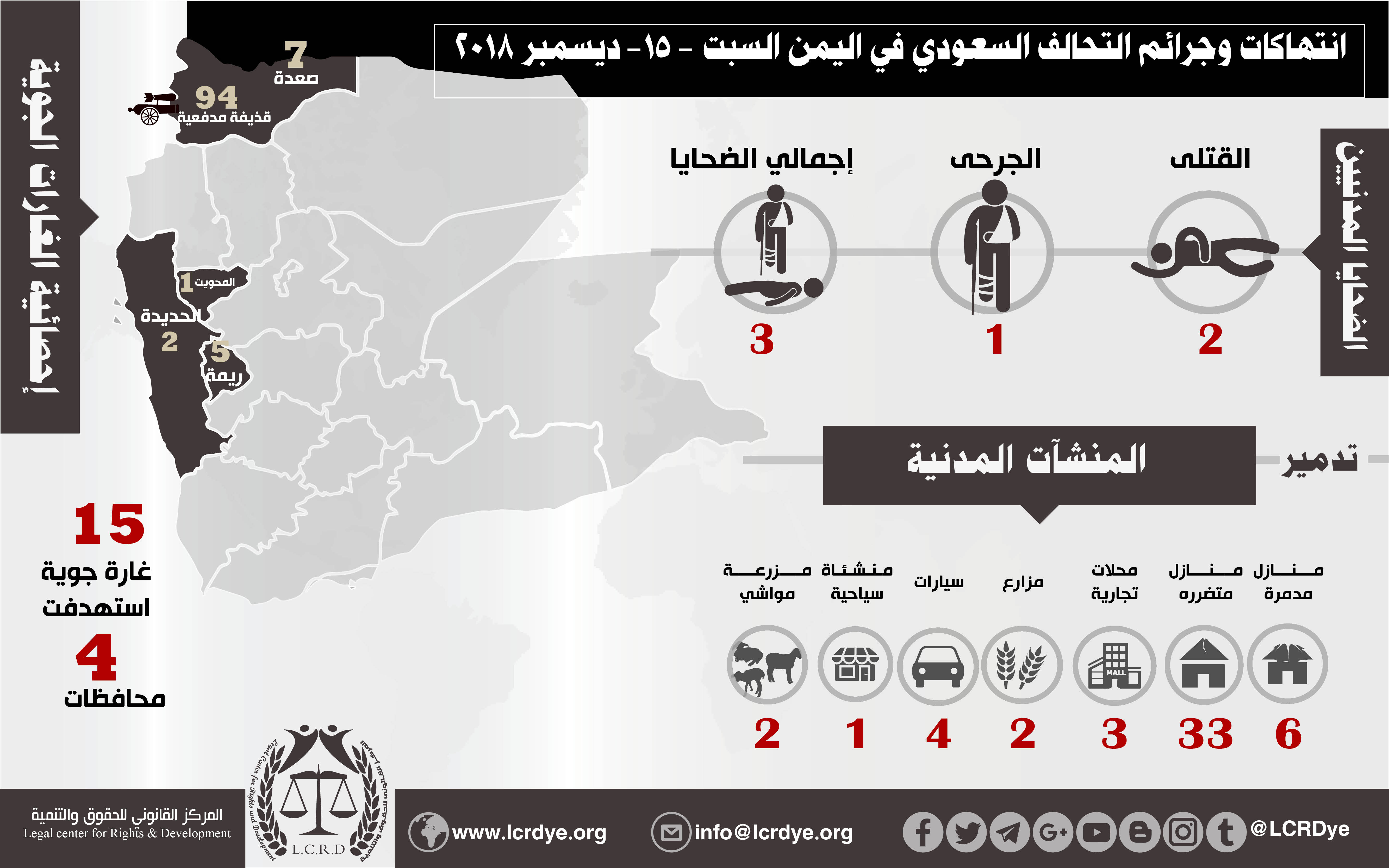 إحصائية أولية لإنتهاكات التحالف السعودي في اليمن 15 ديسمبر 2018
