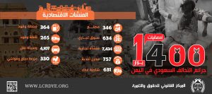احصائية المنشآت الاقتصادية المدمرة والمتضررة في اليمن نتيجة الغارات التي تشنها قوات التحالف السعودي خلال 1400 يوم منذ بداية العدوان على اليمن Last updated يناير 26, 2019 Share FacebookTwitterGoogle+ReddItWhatsAppPinterestالبريد الإلكتروني