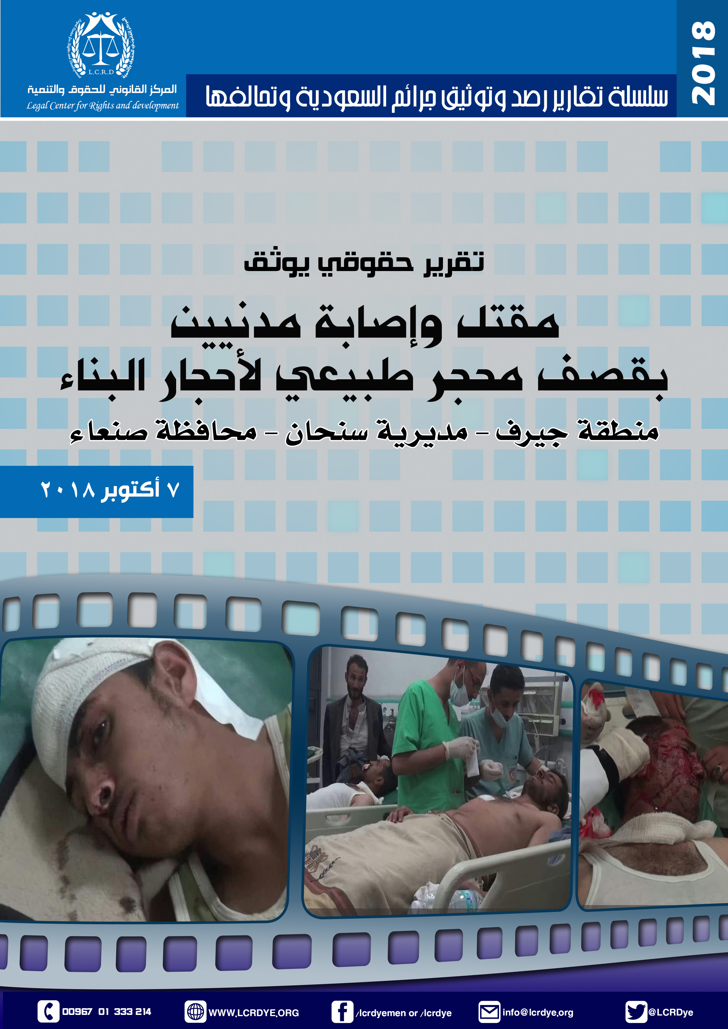 قتل وإصابة مدنيين بقصف محجر طبيعي لأحجار البناء منطقة جيرف – مديرية سنحان – محافظة صنعاء بتاريخ 7 أكتوبر 2018م
