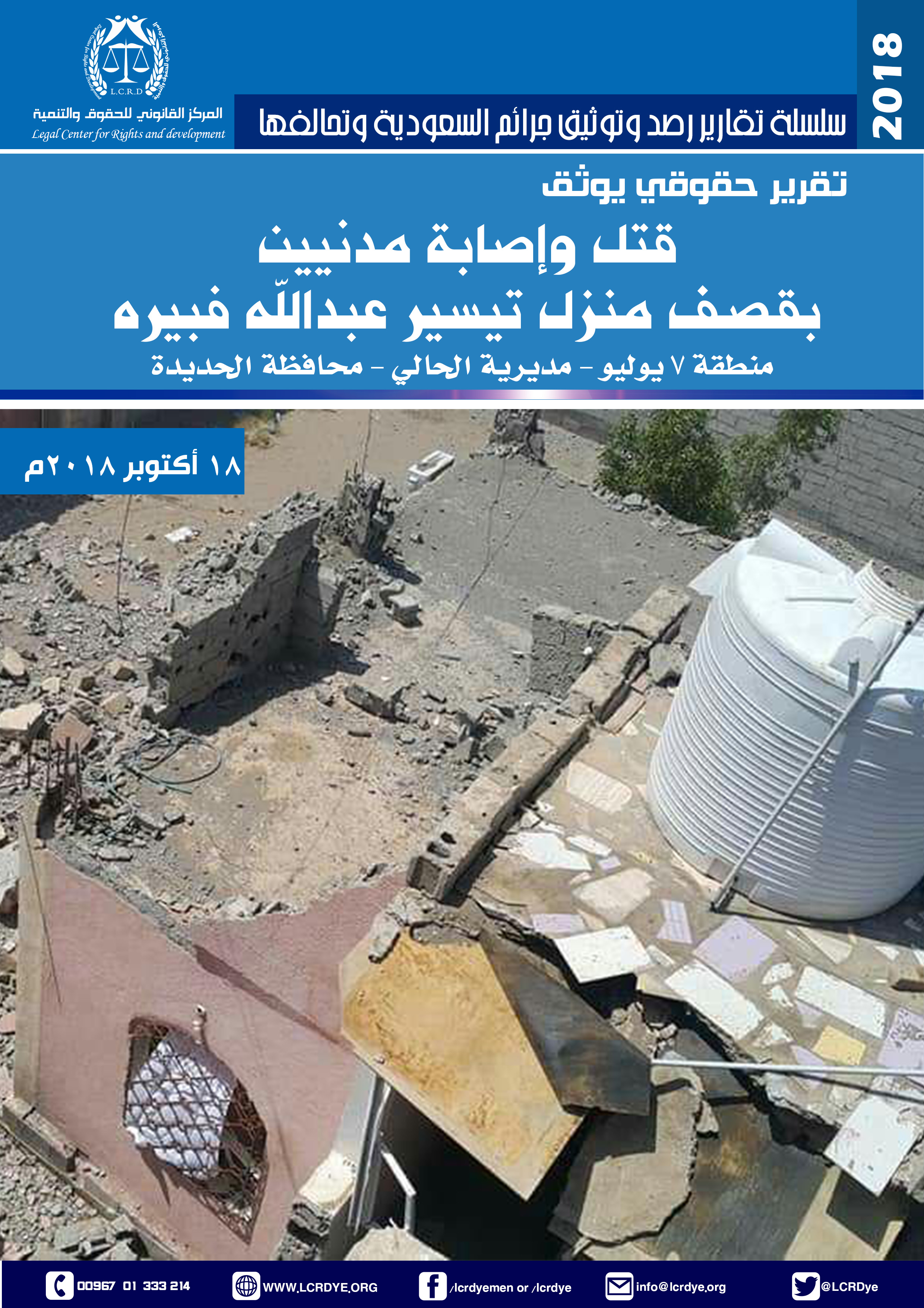 قتل وإصابة مدنيين بقصف منزل تيسير عبدالله فبيره منطقة 7 يوليو – مديرية الحالي – محافظة الحديدة بتاريخ 18 أكتوبر 2018م