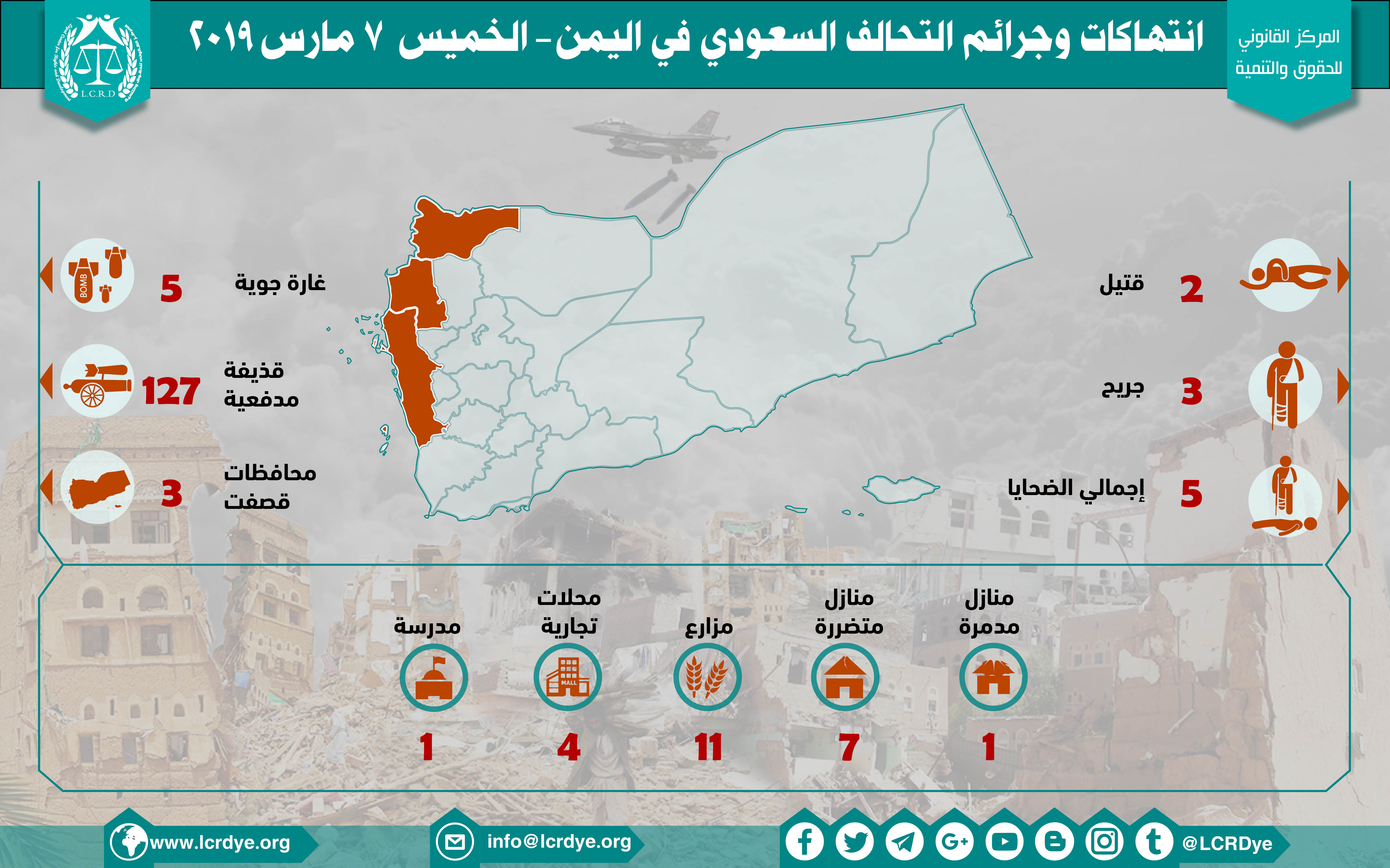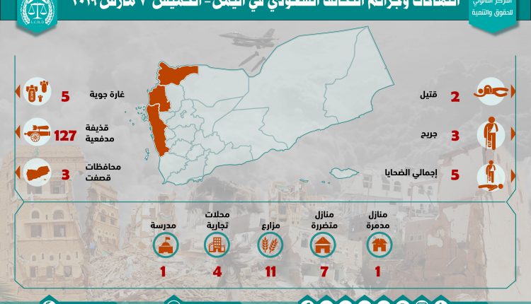إحصائية أولية لإنتهاكات التحالف السعودي في اليمن 7 مارس 2019