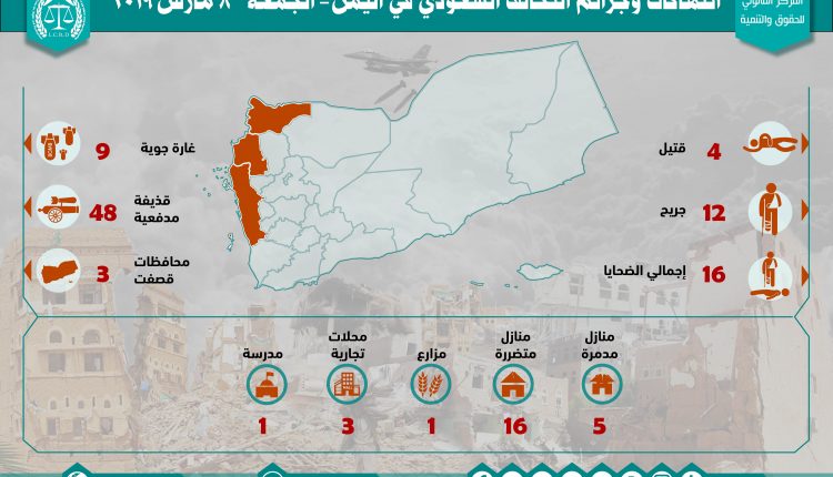 إحصائية أولية لإنتهاكات التحالف السعودي في اليمن 8 مارس 2019