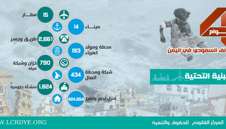 احصائية البنية التحتية المدمرة والمتضررة في اليمن نتيجة الغارات التي تشنها قوات التحالف السعودي خلال 4 أعوام منذ بداية العدوان على اليمن On مارس 26, 2019 Share FacebookTwitterGoogle+ReddItWhatsAppPinterestالبريد الإلكتروني