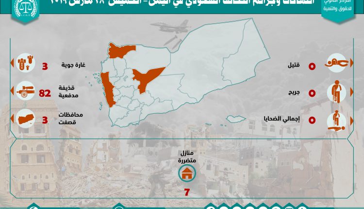 إحصائية أولية لإنتهاكات التحالف السعودي في اليمن 28 مارس 2019 Last updated مارس 30, 2019 للتحميل : استهداف البنى التحتيةاستهداف المدنيينالضحايا المدنيين في اليمنالمركز القانوني للحقوق والتنميةاليمنرصد وتوثيق انتهاكات التحالف السعوديعاصفة الحزمغارات التحالف السعودي على اليمن Share FacebookTwitterGoogle+ReddItWhatsAppPinterestالبريد الإلكتروني