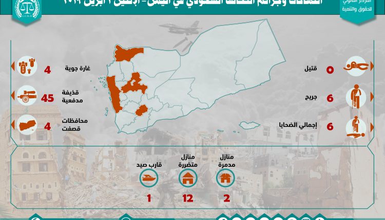 إحصائية أولية لإنتهاكات التحالف السعودي في اليمن 1 أبريل 2019