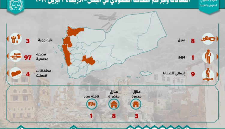 إحصائية أولية لإنتهاكات التحالف السعودي في اليمن 2 أبريل 2019