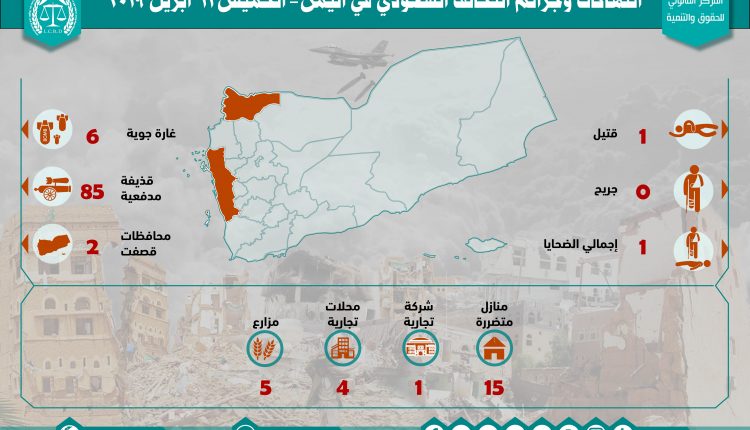إحصائية أولية لإنتهاكات التحالف السعودي في اليمن 11 أبريل 2019