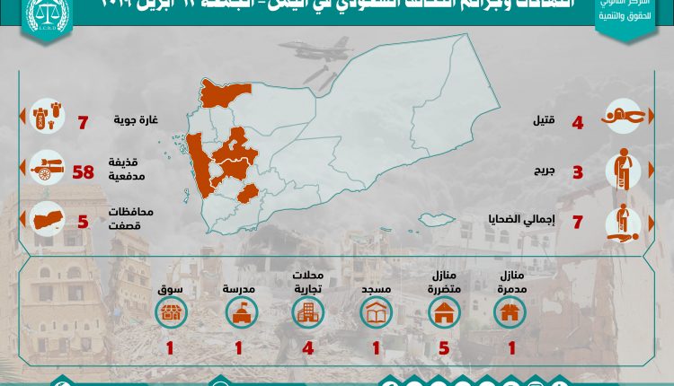 إحصائية أولية لإنتهاكات التحالف السعودي في اليمن 12 أبريل 2019 Last updated أبريل 13, 2019 للتحميل : استهداف البنى التحتيةاستهداف المدنيينالتحالف السعوديالمركز القانوني للحقوق والتنميةاليمنجرائم ضد الانسانيةرصد وتوثيق انتهاكات التحالف السعوديعاصفة الحزم Share FacebookTwitterGoogle+ReddItWhatsAppPinterestالبريد الإلكتروني