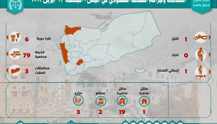 إحصائية أولية لإنتهاكات التحالف السعودي في اليمن 19 أبريل 2019 Last updated أبريل 22, 2019 للتحميل : استهداف المدنيينالضحايا المدنيين في اليمنالمركز القانوني للحقوق والتنميةاليمنجرائم ضد الانسانيةرصد وتوثيق انتهاكات التحالف السعوديعاصفة الحزمغارات التحالف السعودي على اليمن Share FacebookTwitterGoogle+ReddItWhatsAppPinterestالبريد الإلكتروني