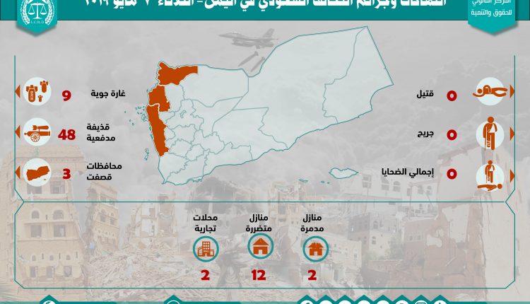 إحصائية أولية لإنتهاكات التحالف السعودي في اليمن 7 مايو 2019 Last updated مايو 11, 2019 للتحميل : استهداف البنى التحتيةاستهداف المنشآت الاقتصاديةاستهداف المنشآت المدنيةالتحالف السعوديالمركز القانوني للحقوق والتنميةاليمنرصد وتوثيق انتهاكات التحالف السعوديعاصفة الحزم Share FacebookTwitterGoogle+ReddItWhatsAppPinterestالبريد الإلكتروني