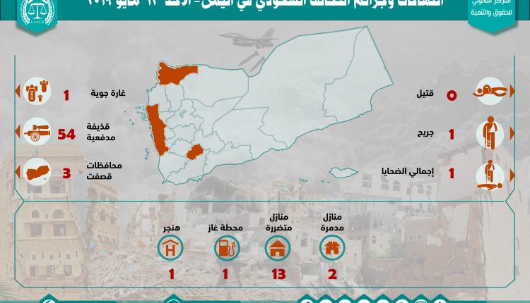 إحصائية أولية لإنتهاكات التحالف السعودي في اليمن 12 مايو 2019 Last updated مايو 13, 2019 للتحميل : استهداف البنى التحتيةاستهداف المدنيينالتحالف السعوديالضحايا المدنيين في اليمنالمركز القانوني للحقوق والتنميةاليمنرصد وتوثيق انتهاكات التحالف السعوديعاصفة الحزم Share FacebookTwitterGoogle+ReddItWhatsAppPinterestالبريد الإلكتروني