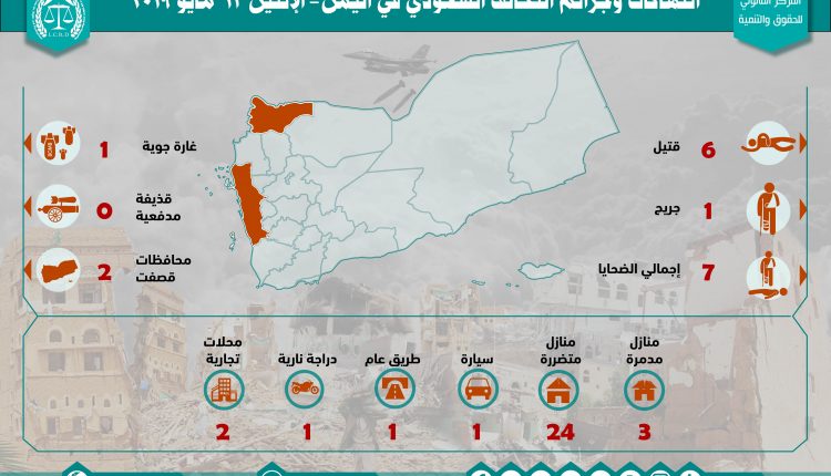 إحصائية أولية لإنتهاكات التحالف السعودي في اليمن 13 مايو 2019 Last updated مايو 15, 2019 للتحميل : استهداف البنى التحتيةاستهداف المدنييناستهداف المنشآت المدنيةالتحالف السعوديالمركز القانوني للحقوق والتنميةاليمنجرائم ضد الانسانيةرصد وتوثيق انتهاكات التحالف السعودي Share FacebookTwitterGoogle+ReddItWhatsAppPinterestالبريد الإلكتروني