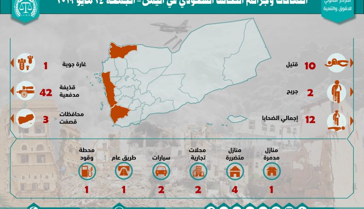 إحصائية أولية لإنتهاكات التحالف السعودي في اليمن 24 مايو 2019 Last updated مايو 25, 2019 للتحميل : استهداف البنى التحتيةاستهداف المنشآت الاقتصاديةاستهداف المنشآت المدنيةالتحالف السعوديالمركز القانوني للحقوق والتنميةاليمنرصد وتوثيق انتهاكات التحالف السعوديعاصفة الحزم Share FacebookTwitterGoogle+ReddItWhatsAppPinterestالبريد الإلكتروني