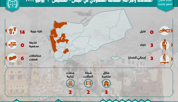 إحصائية أولية لإنتهاكات التحالف السعودي في اليمن 6 يونيو 2019
