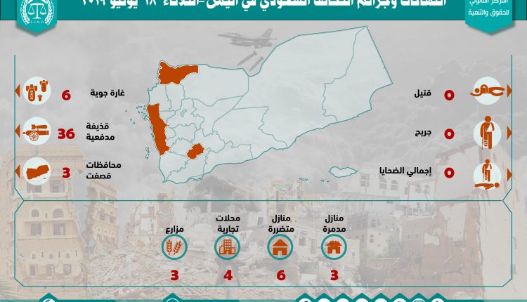 إحصائية أولية لإنتهاكات التحالف السعودي في اليمن 18 يونيو 2019 Last updated يونيو 19, 2019 للتحميل : التحالف السعوديالمركز القانوني للحقوق والتنميةاليمنرصد وتوثيق انتهاكات التحالف السعوديعاصفة الحزمغارات التحالف السعودي على اليمن Share FacebookTwitterGoogle+ReddItWhatsAppPinterestالبريد الإلكتروني
