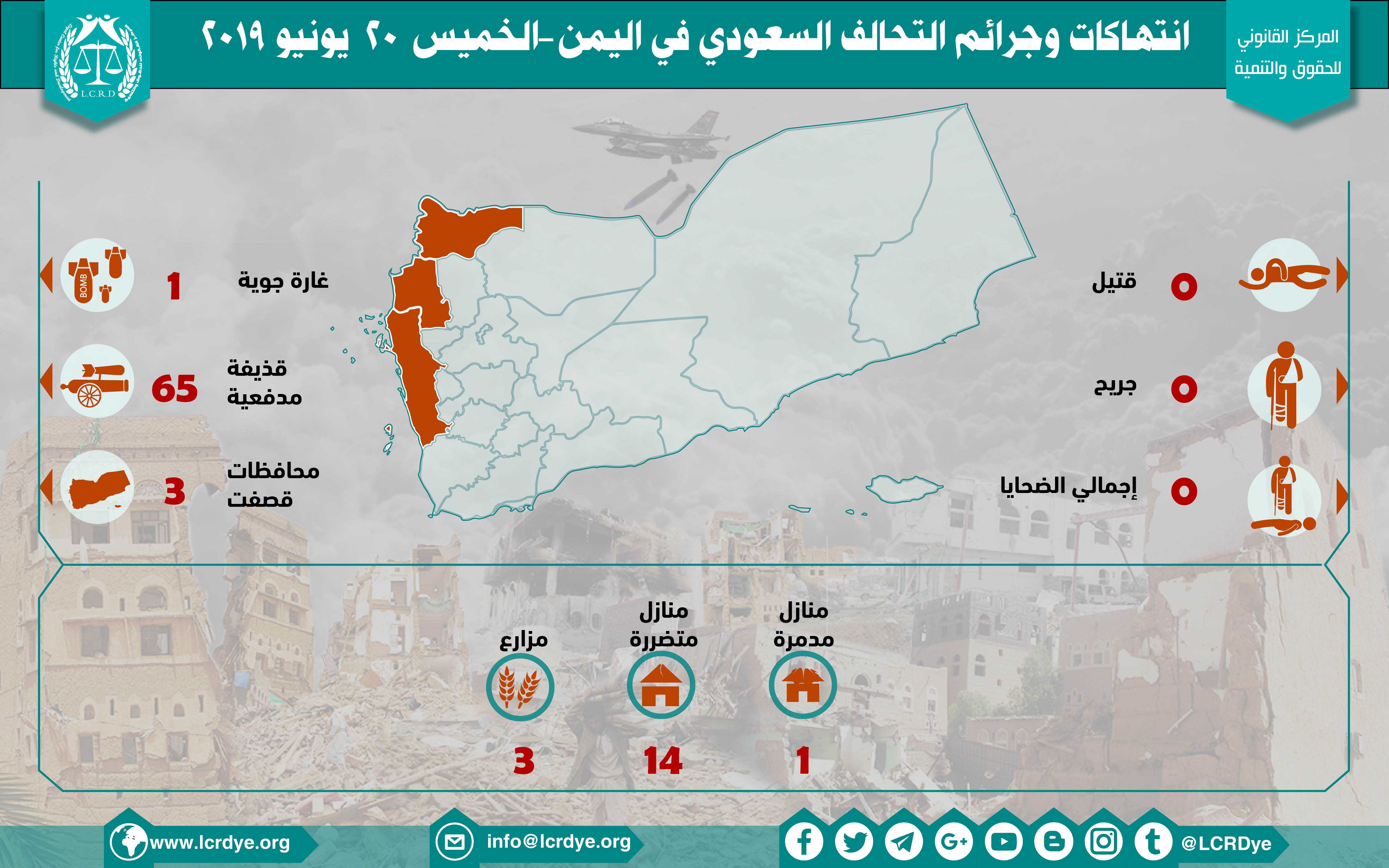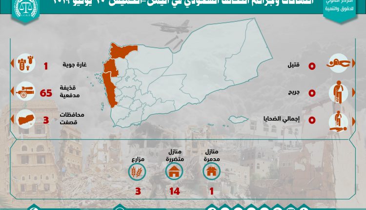 إحصائية أولية لإنتهاكات التحالف السعودي في اليمن 20 يونيو 2019 Last updated يونيو 23, 2019 للتحميل : التحالف السعوديالمركز القانوني للحقوق والتنميةاليمنرصد وتوثيق انتهاكات التحالف السعوديعاصفة الحزمغارات التحالف السعودي على اليمن Share FacebookTwitterGoogle+ReddItWhatsAppPinterestالبريد الإلكتروني