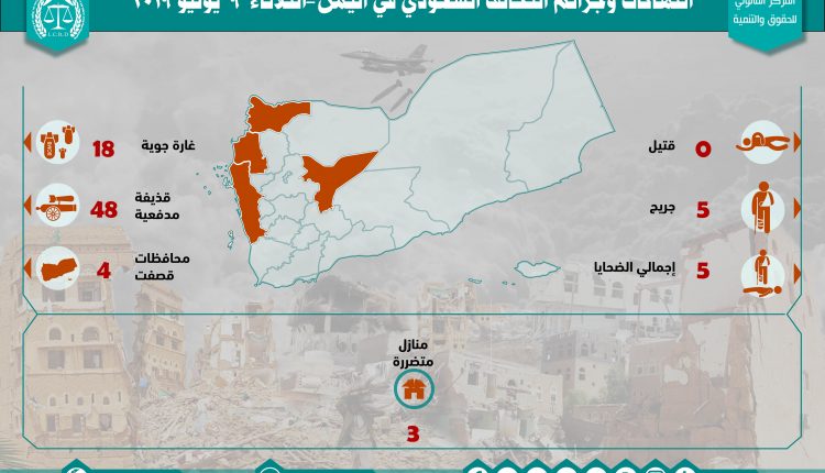 إحصائية أولية لإنتهاكات التحالف السعودي في اليمن 9 يوليو 2019