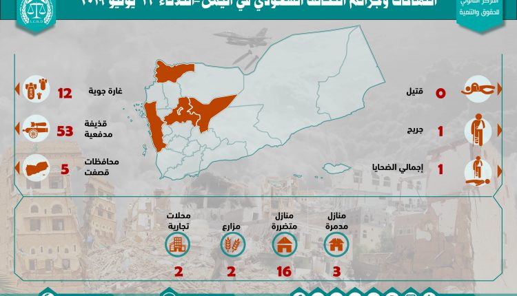 إحصائية أولية لإنتهاكات التحالف السعودي في اليمن 16 يوليو 2019