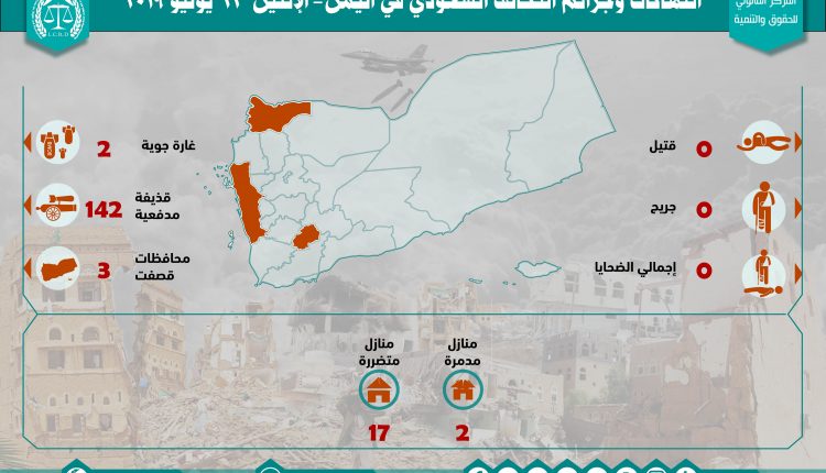إحصائية أولية لإنتهاكات التحالف السعودي في اليمن 22 يوليو 2019 Last updated يوليو 23, 2019 للتحميل : استهداف المنشآت المدنيةالتحالف السعوديالمركز القانوني للحقوق والتنميةاليمنرصد وتوثيق انتهاكات التحالف السعوديعاصفة الحزمغارات التحالف السعودي على اليمن Share FacebookTwitterGoogle+ReddItWhatsAppPinterestالبريد الإلكتروني