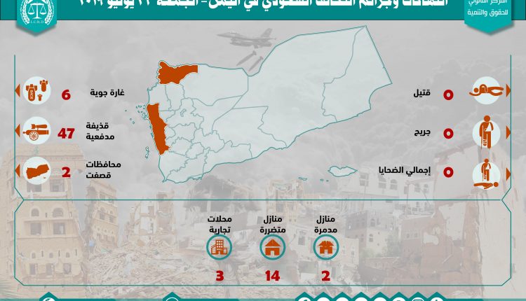 إحصائية أولية لإنتهاكات التحالف السعودي في اليمن 26 يوليو 2019 Last updated يوليو 28, 2019 للتحميل : استهداف البنى التحتيةاستهداف المنشآت المدنيةالتحالف السعوديالمركز القانوني للحقوق والتنميةاليمنرصد وتوثيق انتهاكات التحالف السعوديعاصفة الحزمغارات التحالف السعودي على اليمن Share FacebookTwitterGoogle+ReddItWhatsAppPinterestالبريد الإلكتروني
